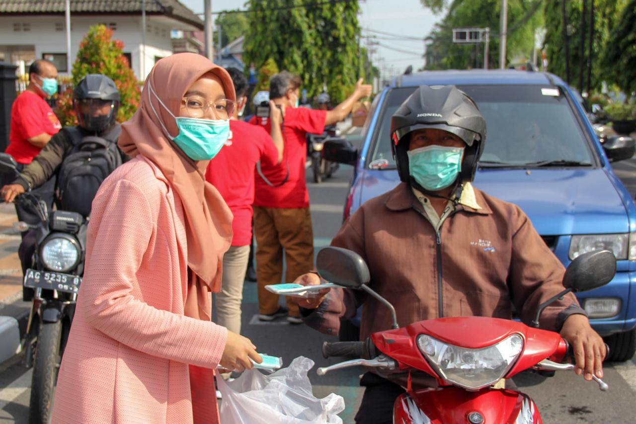 Acara yang diikuti oleh pegawai KPP Pratama Kediri ini diisi dengan membagikan tumbler, gelas, dan masker kepada pengguna jalan.