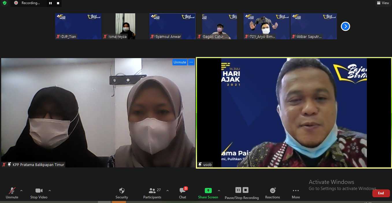 Kantor Pelayanan Pajak (KPP) Pratama Balikpapan Timur memperingati Hari Pajak dengan cara mendekatkan diri dengan Tuhan Yang Maha Esa melalui acara Pajak Bertilawah 2021 secara daring di Balikpapan (Jumat, 9/7). Acara berlangsung selama tiga hari dimulai sejak Rabu 7 Juli 2021 kemarin.