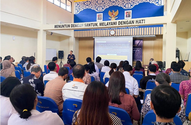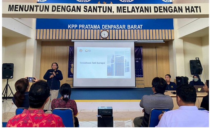Kantor Pelayanan Pajak (KPP) Pratama Denpasar Barat mengadakan sosialisasi tentang anti korupsi dan PMK nomor 168 tahun 2023 tentang Petunjuk Pelaksanaan Pemotongan Pajak Atas Penghasilan Sehubungan Dengan Pekerjaan, Jasa, atau Kegiatan Orang Pribadi bertempat di Aula KPP Pratama Denpasar Barat (Rabu, 31/1).
