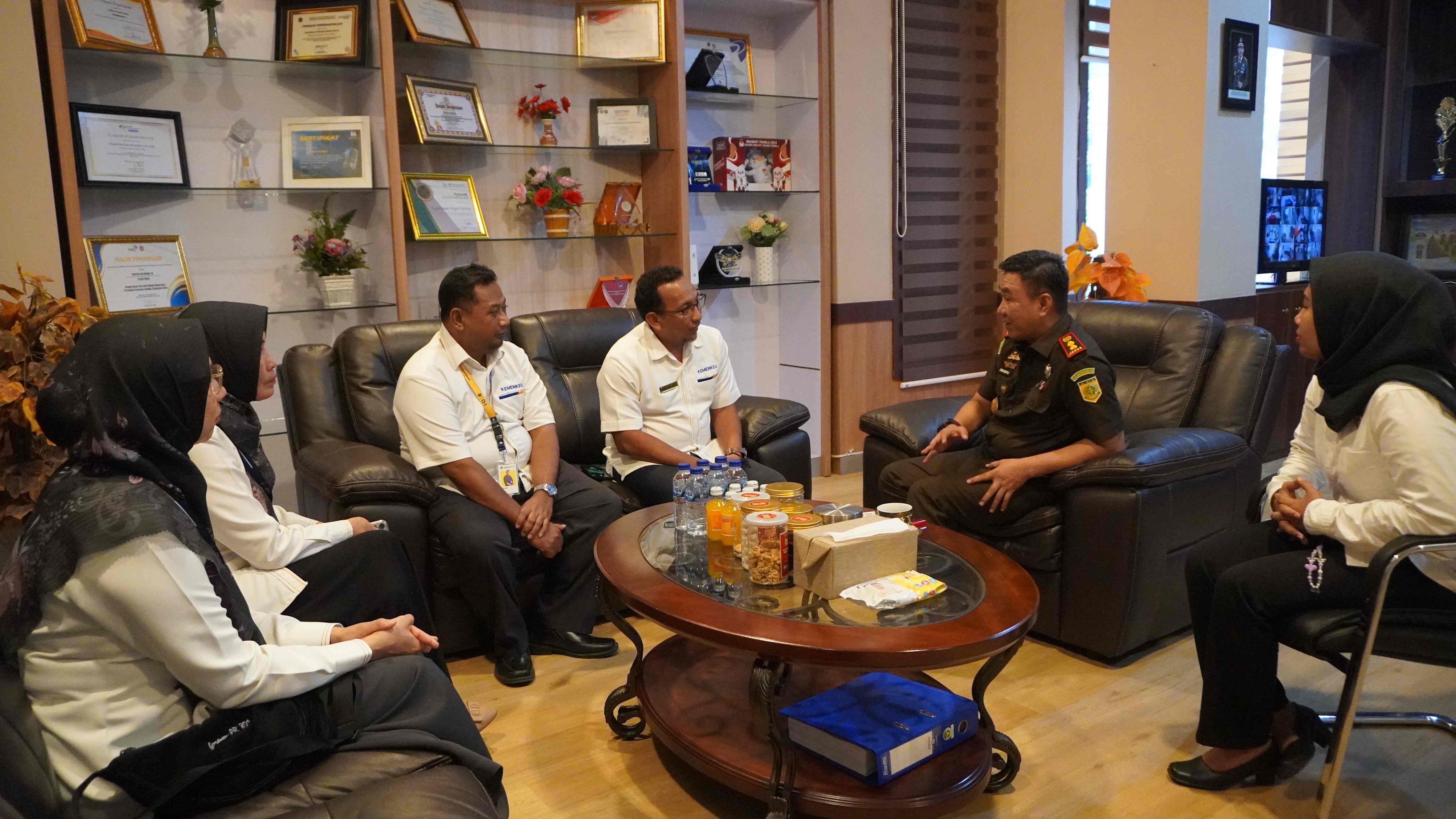 Kepala Kantor Pelayanan Pajak (KPP) Pratama Maros, Khris Rolanto, didampingi timnya, mengadakan kunjungan kerja ke Kantor Kejaksaan Negeri Maros di Jalan Dr. Ratulangi, Kabupaten Maros, guna membahas kerja sama terkait pengamanan penerimaan pajak dari belanja dana desa dan alokasi dana desa di Kabupaten Maros (Senin, 18/11).