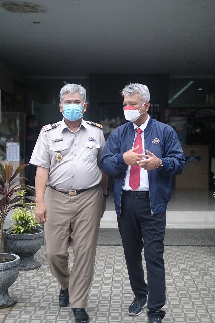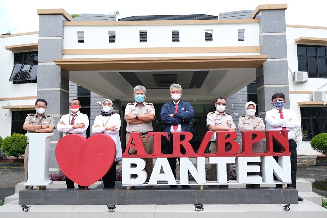Kepala Kanwil DJP Banten Dionysius Lucas Hendrawan melakukan kunjungan kerja perdana ke Kanwil BPN Banten dan berbincang dengan Kepala Badan Pertanahan Nasional (BPN) Banten yang baru Rudi Rubijaya di Ruang Kerja Kepala Kanwil BPN Banten, Kota Serang (Senin, 13/9).