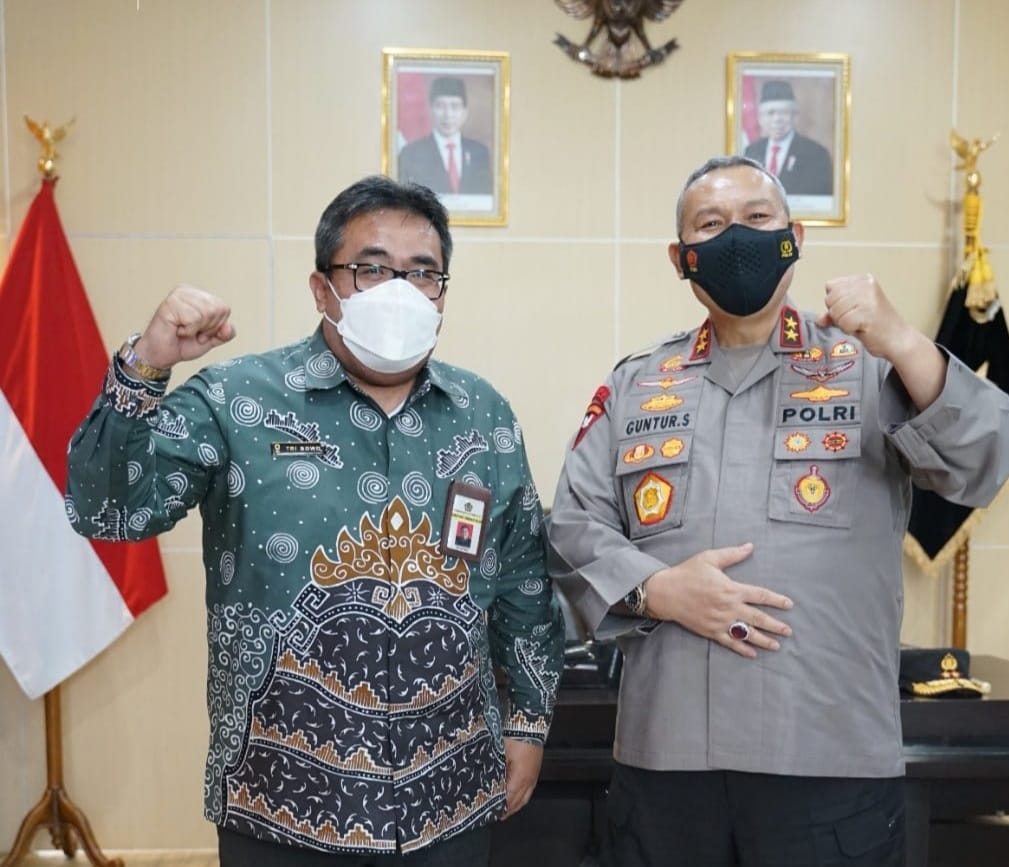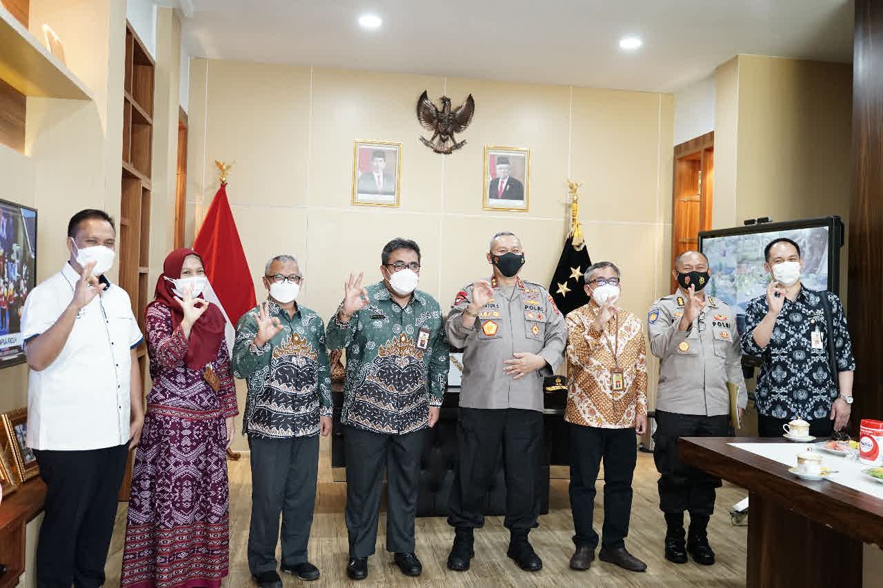 Kepala Kepolisian Daerah Bengkulu Guntur Setyanto menyambut kunjungan kerja Kepala Kantor Wilayah Direktorat Jenderal Pajak (Kanwil DJP) Bengkulu dan Lampung Tri Bowo di ruang kerjanya, Kota Bengkulu (Selasa, 12/10).