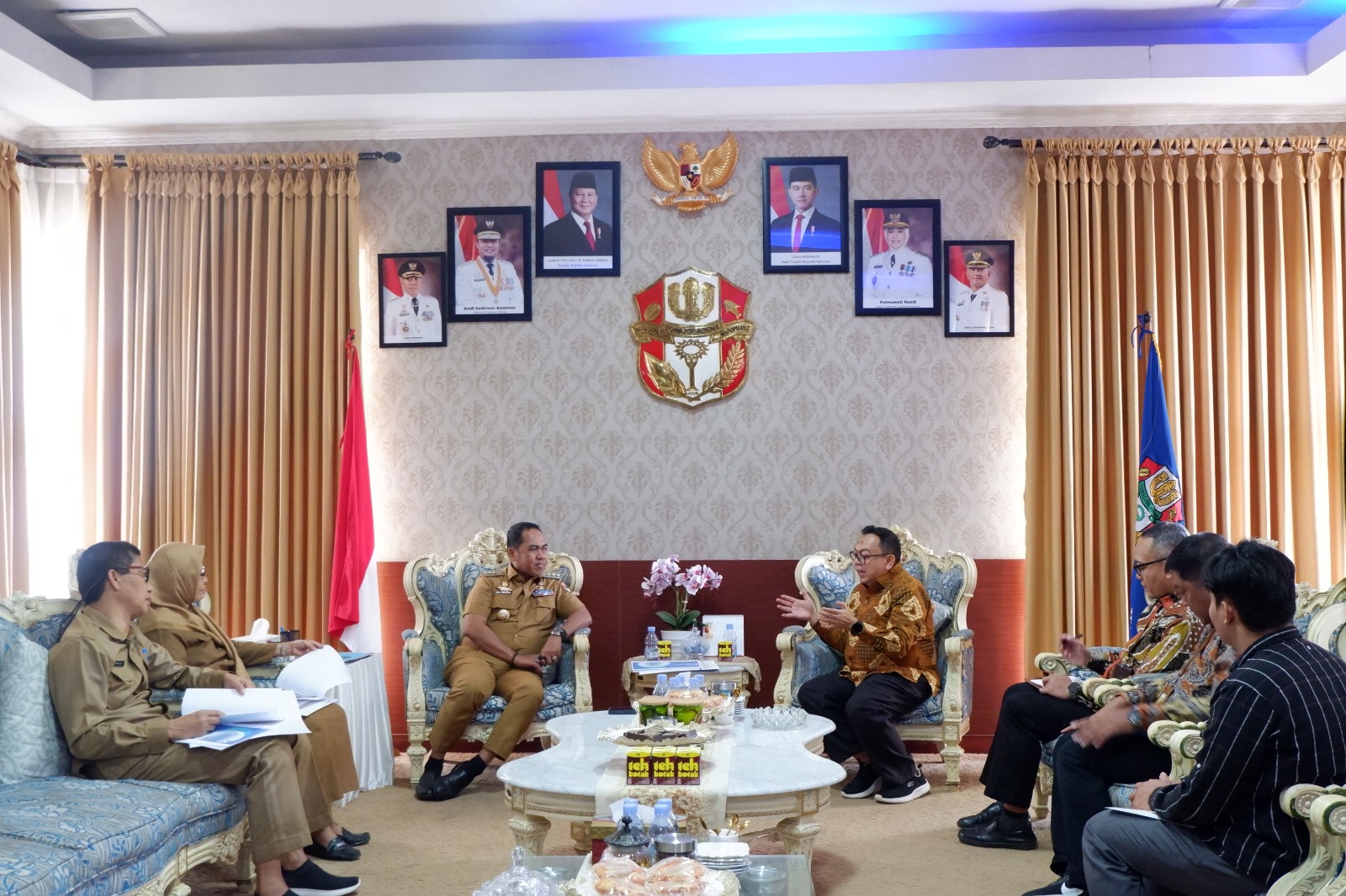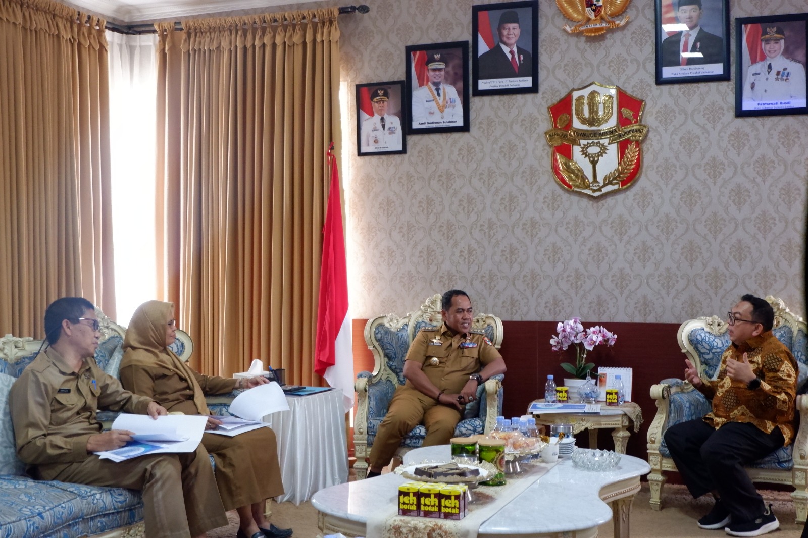 Kepala Kantor Pelayanan Pajak (KPP) Pratama Watampone, Amran, didampingi oleh Kepala Seksi Pengawasan V, Fikri Kurniawan, serta Kepala Kantor Pelayanan, Penyuluhan, dan Konsultasi Perpajakan (KP2KP) Sengkang, Riza Kurniawan, beserta tiga pegawai, melaksanakan audiensi ke Kantor Bupati Kabupaten Wajo di Jalan Rusa Nomor 17, Kecamatan Tempe, Sengkang, Kabupaten Wajo, Sulawesi Selatan (Selasa, 5/8).