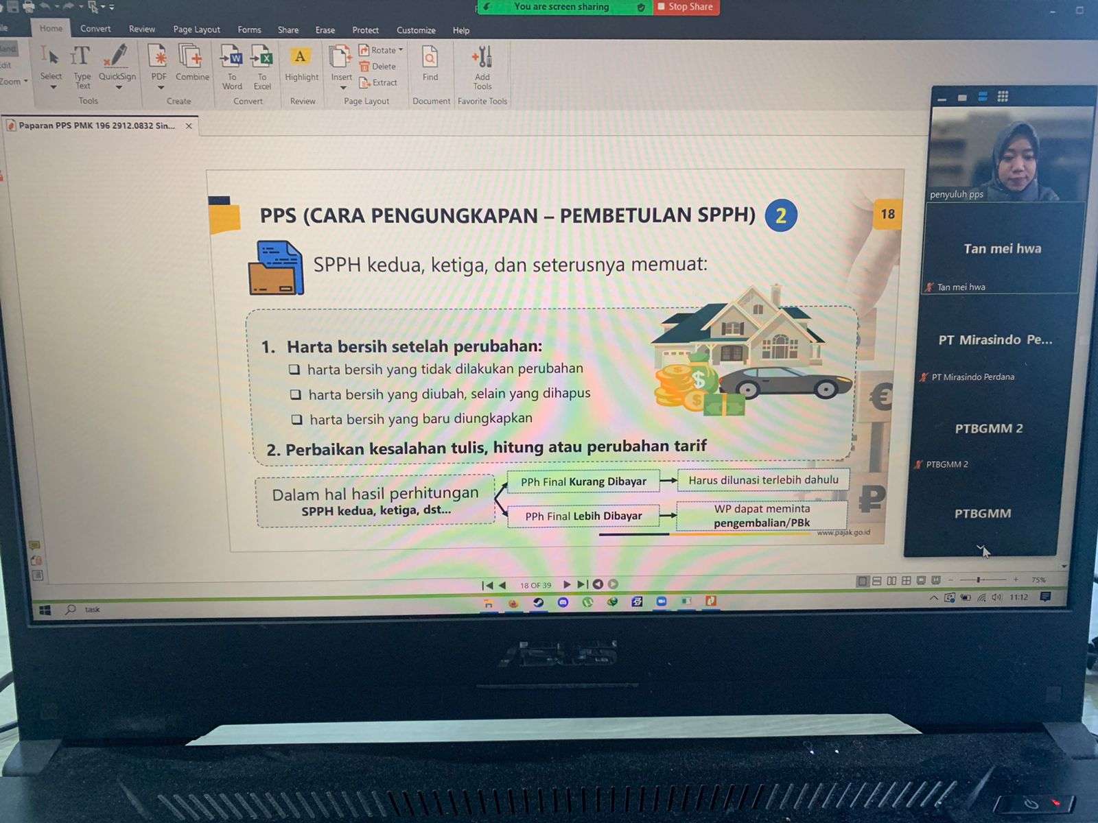 Pembahasan materi PPS dibawakan oleh Penyuluh Pajak KPP Pratama Tanjung Balai Karimun Evva Yulinda. Evva memberikan paparan terkait gambaran umum PPS yang berlangsung mulai tanggal 1 Januari 2022 sampai dengan 30 Juni 2022 serta menjelaskan berbagai informasi tentang PPS seperti syarat mengikuti PPS, jenis kebijakan PPS, harta bersih yang dapat diungkapkan, manfaat mengikuti PPS, mekanisme PPS, dan berkas yang harus dipersiapkan wajib pajak untuk mengikuti PPS.