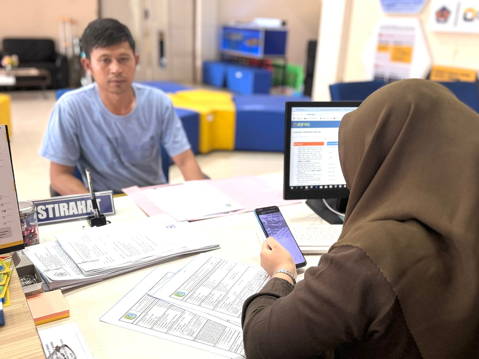 “Saya baru pertama kali membuat billing atas penjualan tanah, Bu. Mohon dibantu,” ujar wajib pajak saat mendatangi loket TPT menemui Firda Amalia, Petugas KPP Pratama Sintang.