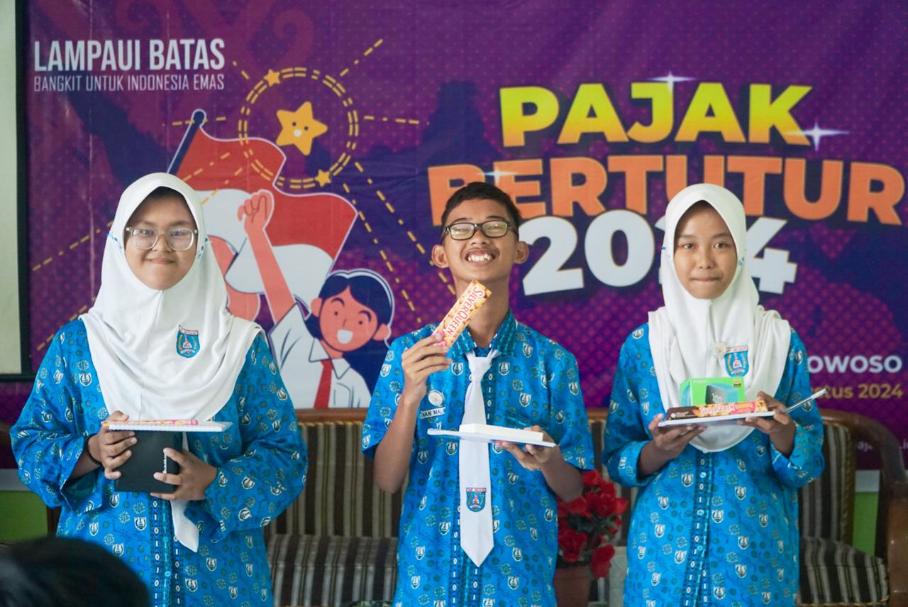 Kantor Pelayanan, Penyuluhan, dan Konsultasi Perpajakan (KP2KP) Bondowoso melaksanakan kegiatan Pajak Bertutur (Patur) 2024 di Sekolah Menengah Pertama (SMP) Negeri 2 Bondowoso, Jalan MT. Haryono Nomor 23, Kelurahan Kotakulon, Kecamatan Bondowoso, Kabupaten Bondowoso, Jawa Timur (Rabu, 7/8). Kegiatan ini diikuti oleh 36 siswa-siswi SMP Negeri 2 Bondowoso.
