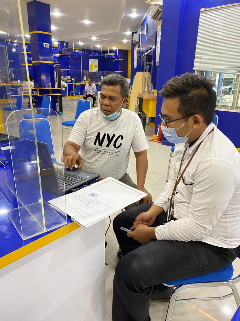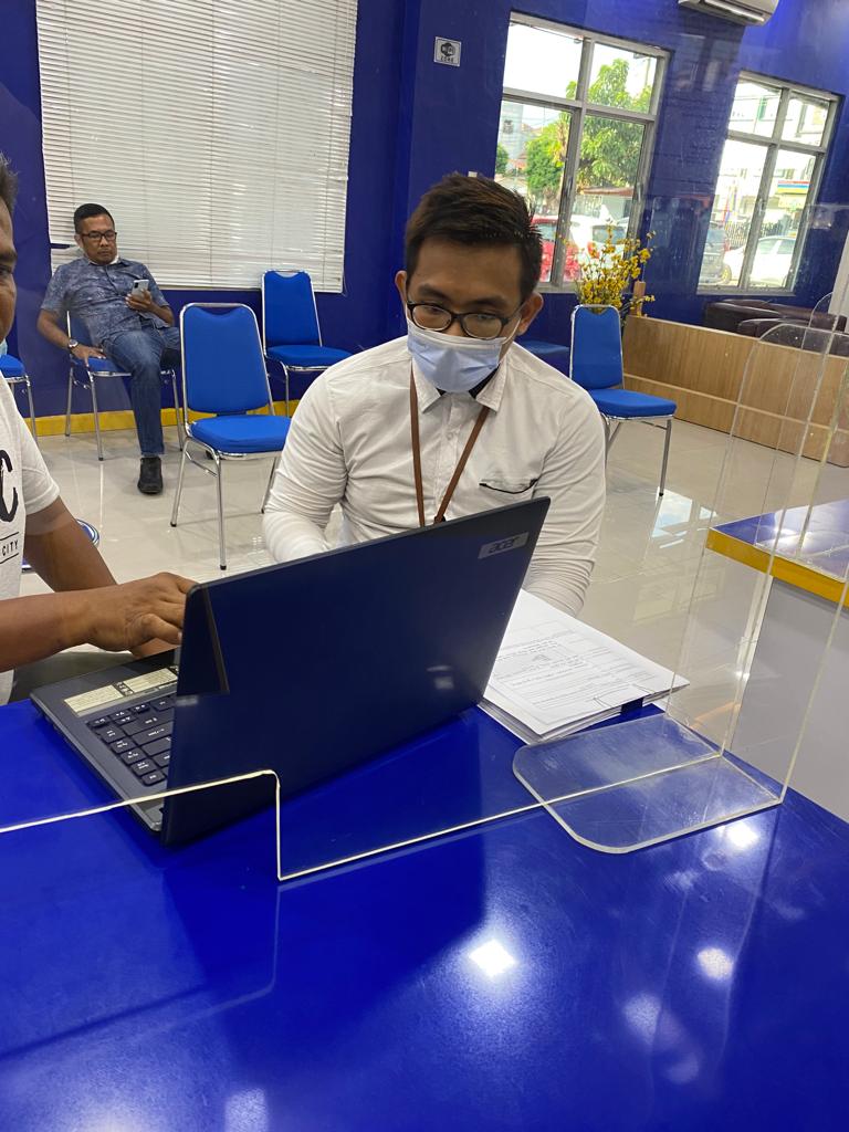 Petugas Kantor Pelayanan Pajak (KPP) Pratama Rantau Prapat memberikan edukasi kepada wajib pajak Pengusaha Kena Pajak (PKP) di Ruang Temu KPP Pratama Rantau Prapat di Kelurahan Rantau Prapat, Kecamatan Rantau Utara, Kabupaten Labuhan Batu,Sumatera Utara (Senin, 27/12). Wajib pajak tersebut berkonsultasi terkait sertfitikat elektronik yang telah diajukan oleh wajib pajak tersebut.