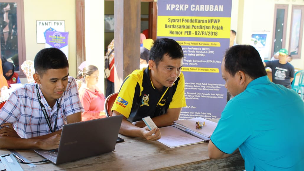Momen ini merupakan kesempatan yang baik bagi KP2KP Caruban untuk dapat menjangkau para wajib pajak di Desa Sawahan yang lokasinya cukup jauh dari KP2KP Caruban. Atas undangan dari Pemkab Madiun, KP2KP Caruban diminta untuk memberikan bantuan dalam hal permohonan NPWP dan konsultasi perpajakan.