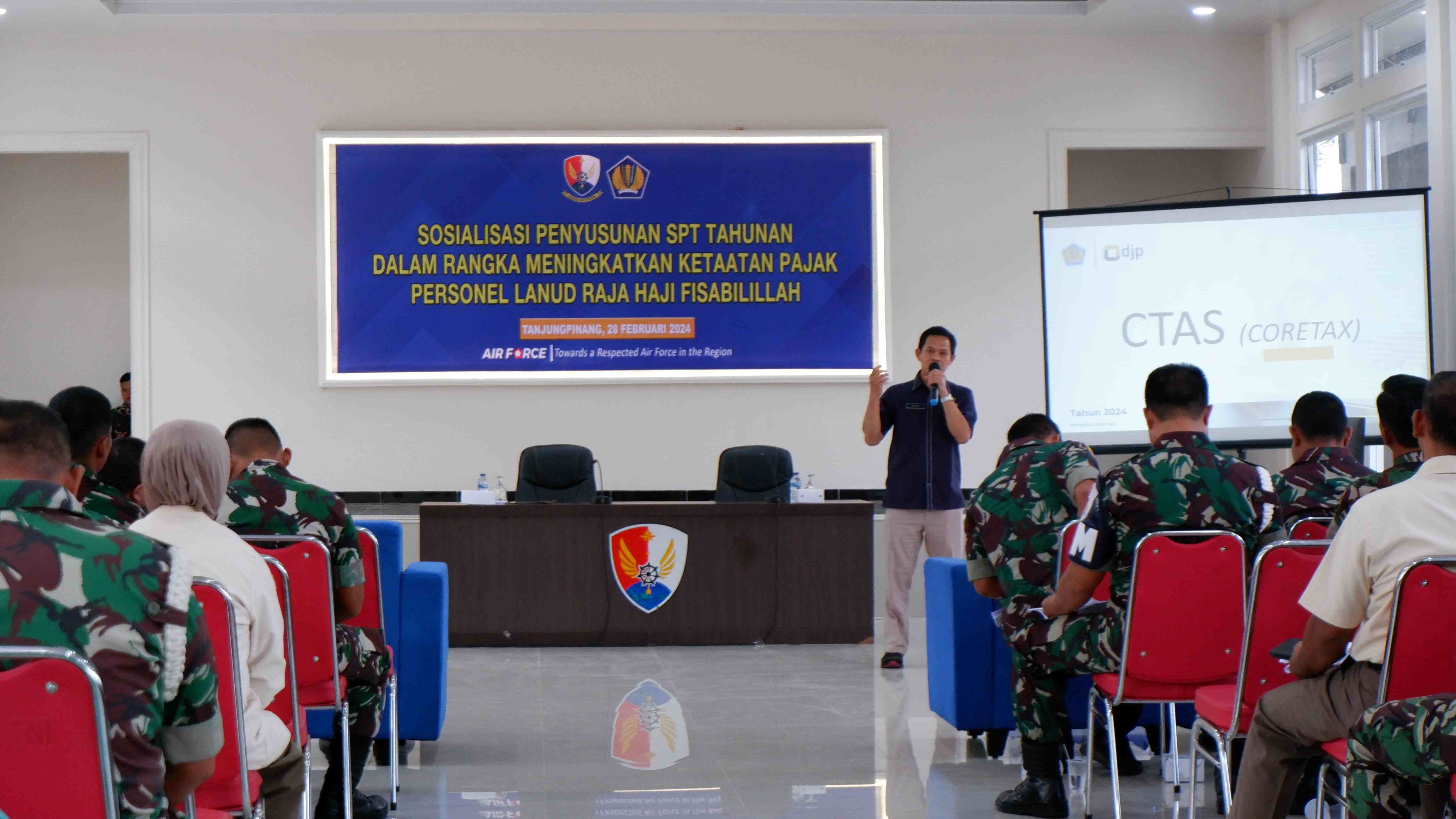Kantor Pelayanan Pajak (KPP) Pratama Tanjung Pinang menggelar asistensi pelaporan Surat Pemberitahuan (SPT) Tahunan di Komando Operasi Udara I Pangkalan Tentara Nasional Indonesia (TNI) Angkatan Udara (AU) Raja Haji Fisabilillah di Tanjungpinang, Kepulauan Riau (Rabu, 28/2).