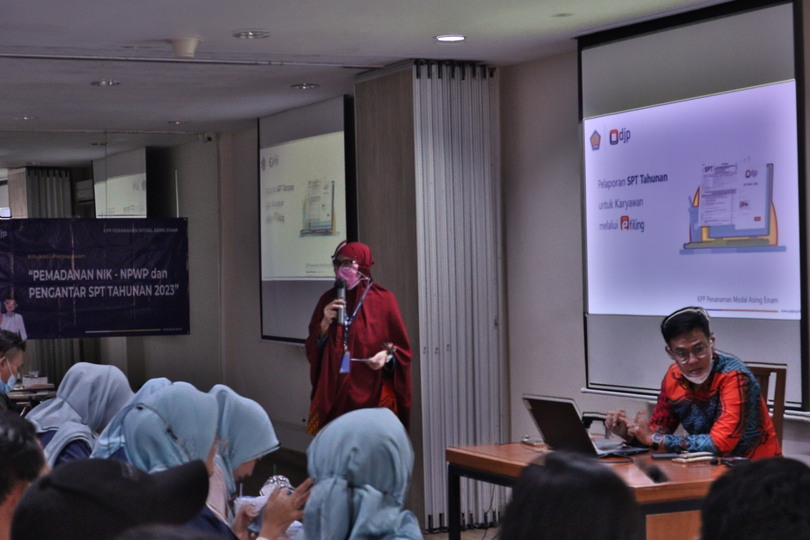 Kantor Pelayanan Pajak (KPP) Penanaman Modal Asing Enam (PMA Enam) menyelenggarakan kegiatan Sosialisasi Pemadanan NIK-NPWP dan Pengantar Pelaporan SPT Tahunan kepada puluhan karyawan Sushi-Tei di Jakarta Selatan yang bertempat di Aula KPP PMA Enam, Kalibata Jakarta (Selasa, 31/1). Materi disampaikan oleh para Penyuluh Pajak KPP PMA Enam.