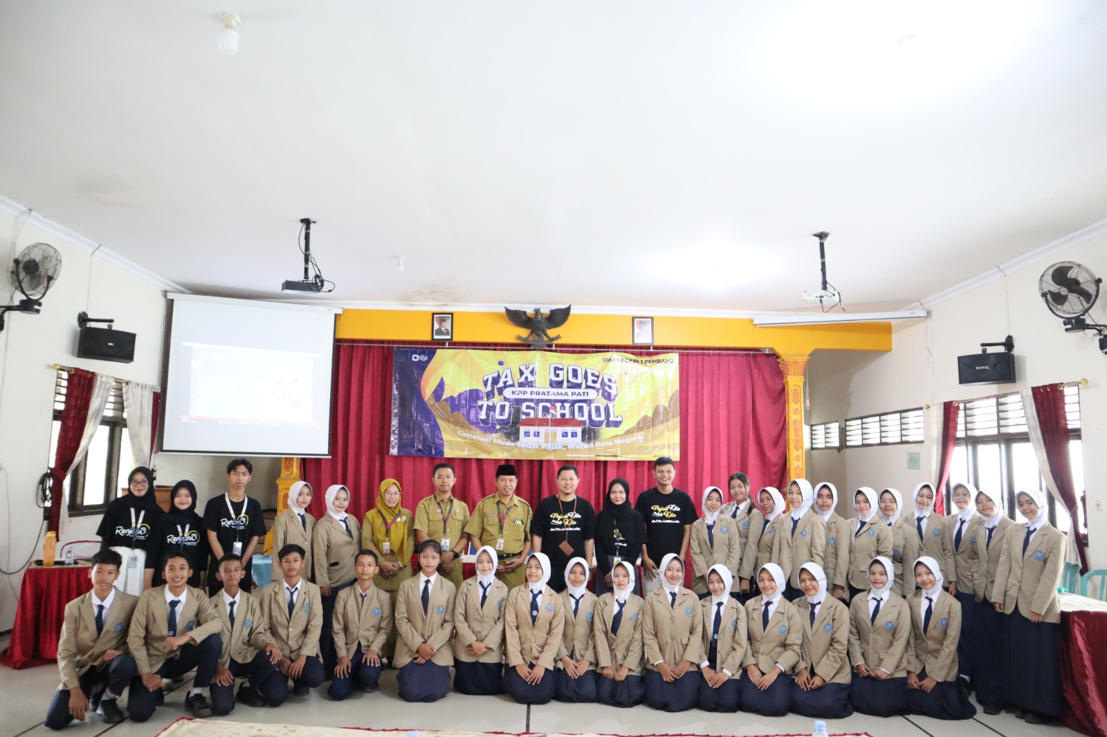 Kantor Pelayanan, Penyuluhan, dan Konsultasi Perpajakan (KP2KP) Rembang kembali menyelenggarakan kegiatan Tax Goes To School (TGTS) tahun 2025 dengan tema Lampaui Batas, Bangkit untuk Indonesia Emas. Kegiatan ini dilaksanakan secara tatap muka di Aula Sekolah Menengah Pertama (SMP) Negeri 1 Rembang, Kabupaten Rembang (Senin, 19/5). Sebanyak 30 siswa SMP Negeri 1 Rembang hadir mengikuti kegiatan tersebut.