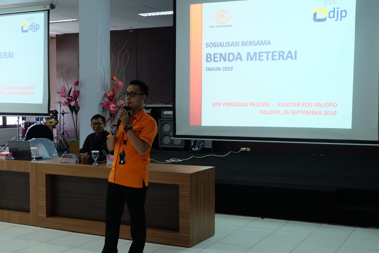 Kantor Pelayanan Pajak (KPP) Pratama Palopo bekerja sama dengan Kantor Pos Cabang Palopo mengadakan Sosialisasi Perpajakan dan Bea Meterai pada Bendahara Satuan Kerja Perangkat Daerah (SKPD) dan Bendahara Kecamatan Se-Kota Palopo (Kamis, 26/9). Acara ini dilangsungkan di Aula Sawerigading KPP Pratama Palopo.