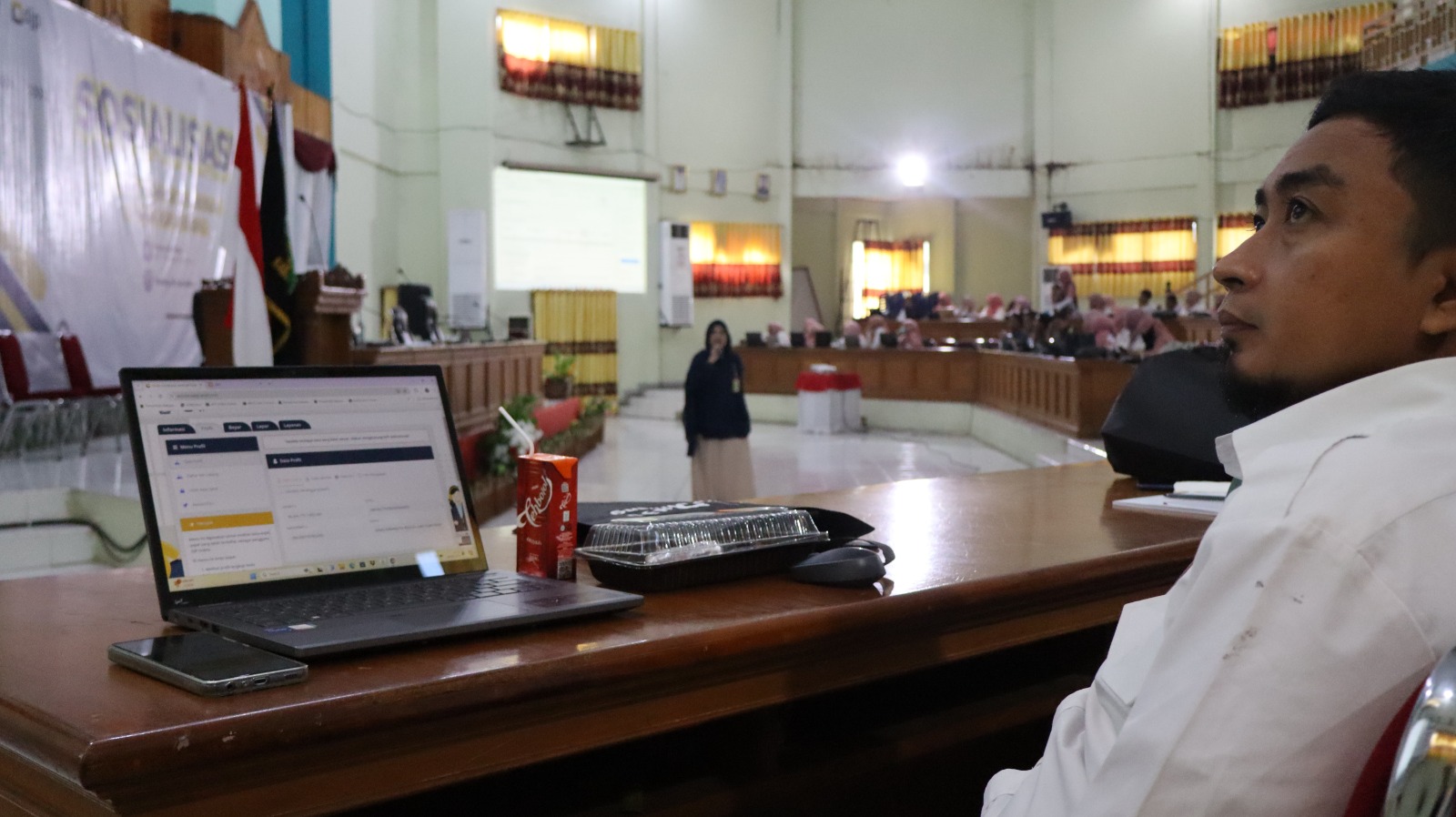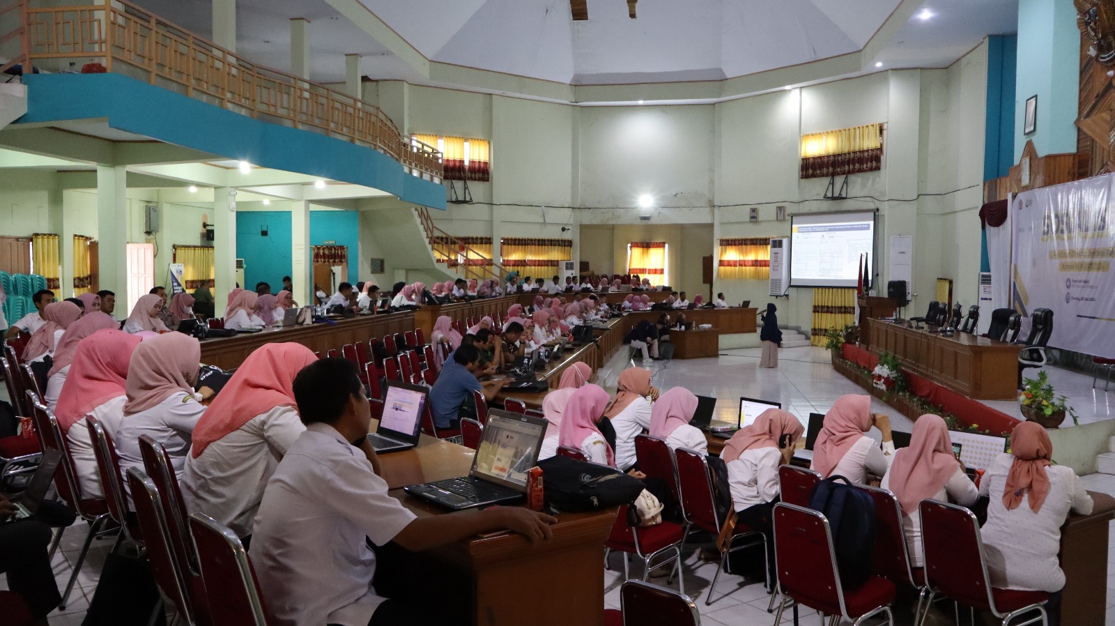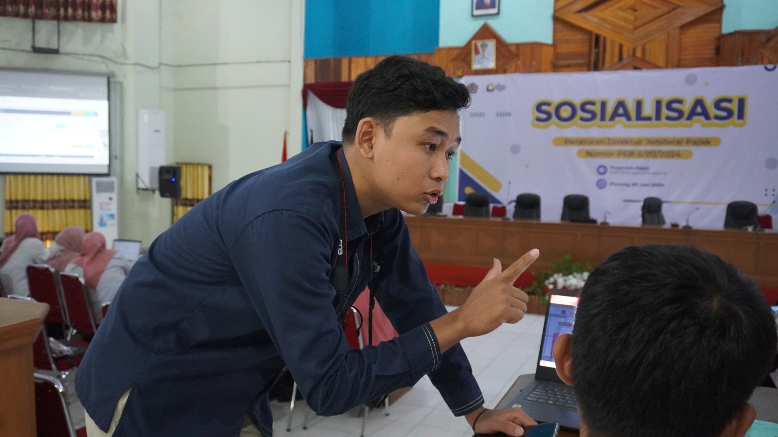 KP2KP Pinrang mengadakan kegiatan sosialisasi dan bimbingan teknis Peraturan Direktur Jenderal Pajak Nomor PER-5/PJ/2024 yang dihadiri oleh 141 Bendahara atau Operator Gaji di lingkungan Kabupaten Pinrang di Aula Kantor Bupati Pinrang, Kelurahan Macorawalie, Kecamatan Watang Sawitto, Kabupaten Pinrang, Sulawesi Selatan (Rabu, 26/6).