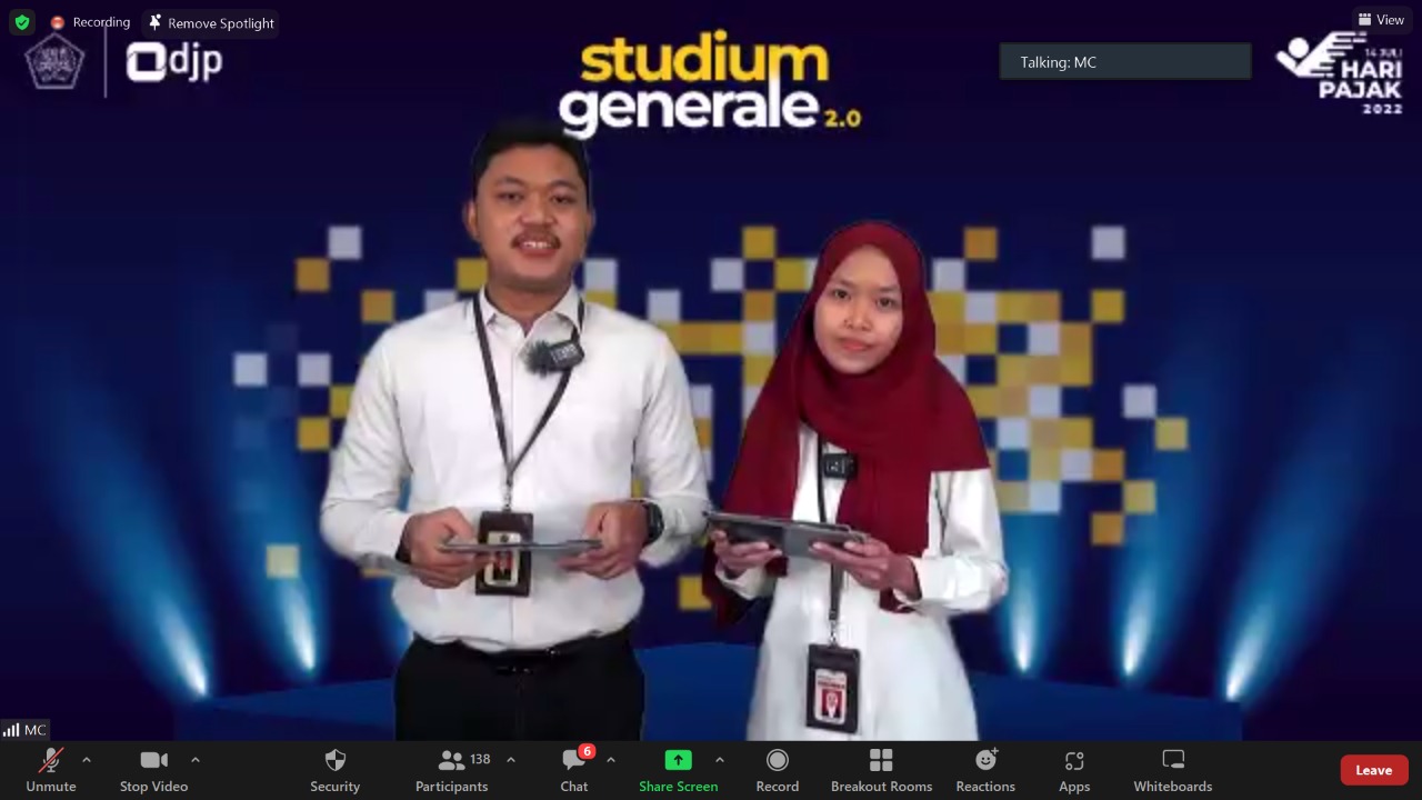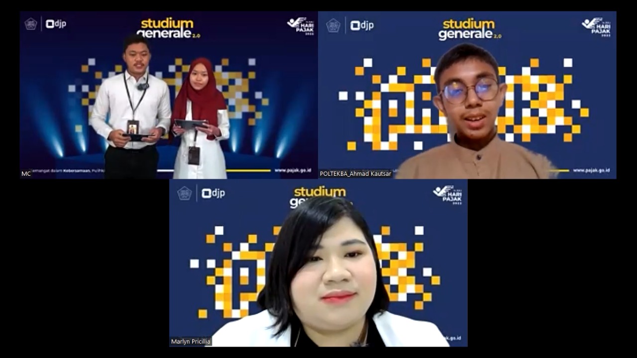 Kantor Wilayah (Kanwil) Direktorat Jenderal Pajak (DJP) Kalimantan Timur dan Utara (Kaltimtara) kembali menghadirkan kuliah umum perpajakan Studium Generale 2.0 secara daring untuk menyemarakkan Hari Pajak yang jatuh tepat pada 14 Juli di Kota Balikpapan (Senin, 18/7). Studium Generale 2.0 diikuti sejumlah 190 mahasiswa dan civitas akademika dari 21 perguruan tinggi di Kalimantan Timur dan Kalimantan Utara.
