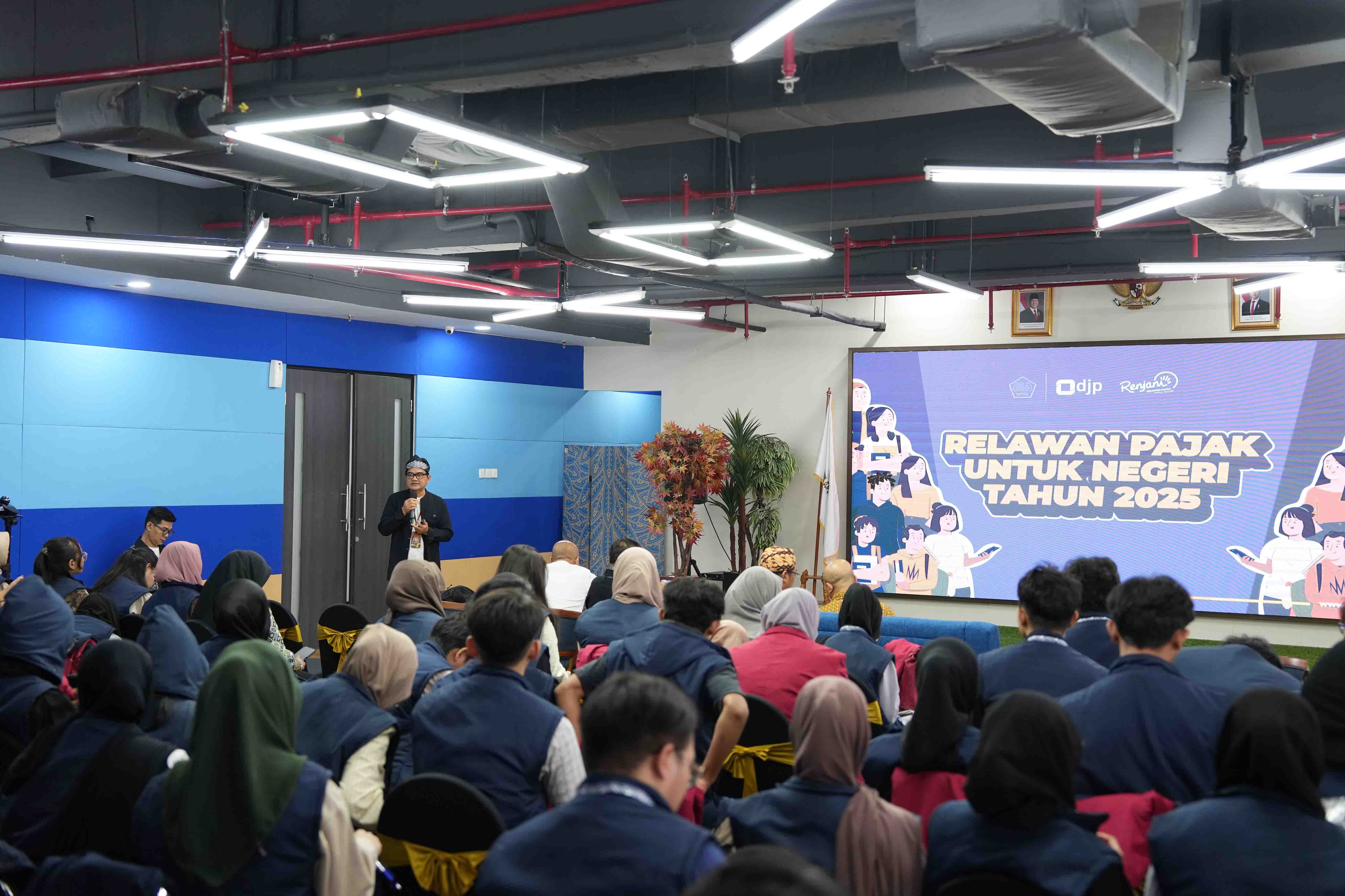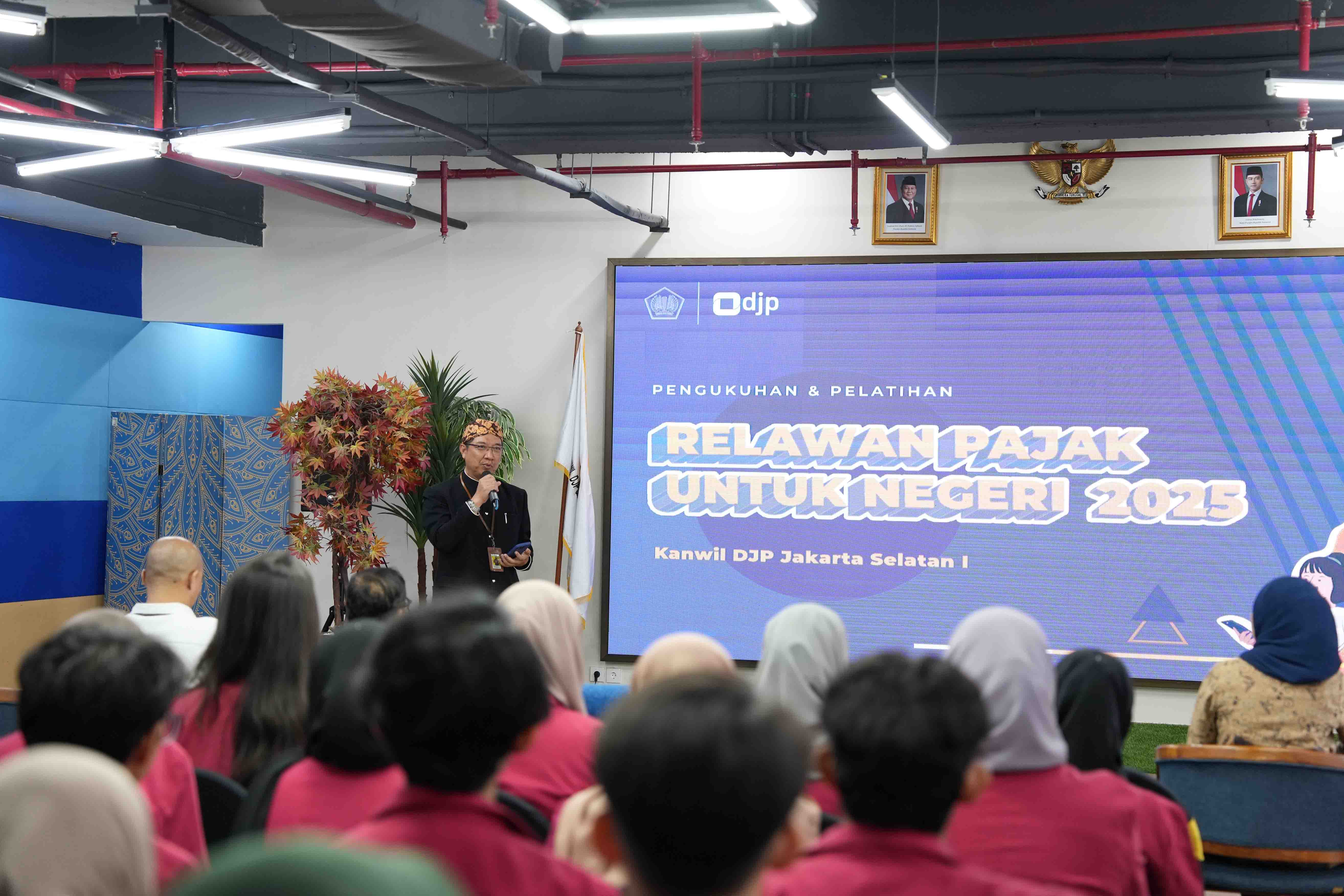 Kantor Wilayah Direktorat Jenderal Pajak (Kanwil DJP) Jakarta Selatan I mengukuhkan 135 Calon Relawan Pajak untuk Negeri atau Renjani 2025 di Aula Kanwil DJP Jakarta Selatan I, Gedung Mangukuluhur Office Tower One, Jalan Gatot Subroto Kav. 1-3, Kota Jakarta Selatan (Senin, 23/12). Selain pengukuhan, Kanwil DJP Jakarta Selatan I juga turut memberi beberapa pelatihan guna menjadi bekal bagi para Renjani untuk melakukan tugasnya di lapangan.