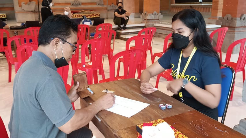 Relawan pajak turut serta dalam rangkaian kegiatan Pojok Pajak dan asistensi pelaporan Surat Pemberitahuan (SPT) Tahunan di Desa Dalung, Kec. Kuta Utara dan Desa Kapal, Kec. Mengwi (Sabtu, 19/03).