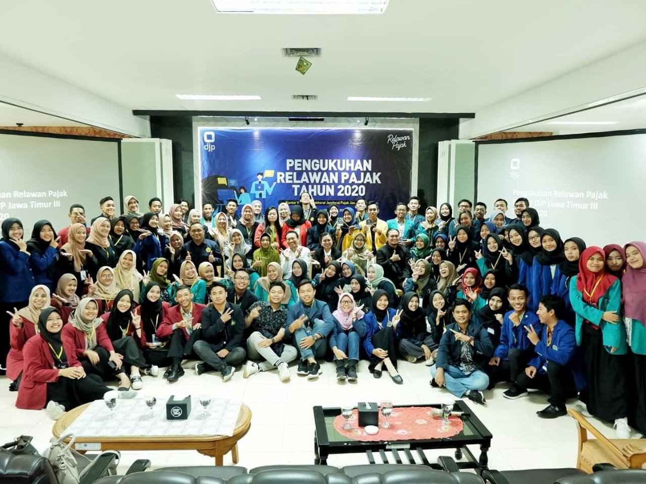 Kanwil DJP Jawa Timur III melaksanakan Pengukuhan Relawan Pajak Tahun 2020 di lobi gedung Jawa Timur III, Malang (Senin, 24/2). Agustin Vita Avantin, Kepala Kanwil DJP Jawa Timur III mengukuhkan secara simbolis 402 Relawan Pajak yang berasal dari 10 perguruan tinggi yang tersebar dari wilayah Kediri hingga Banyuwangi.