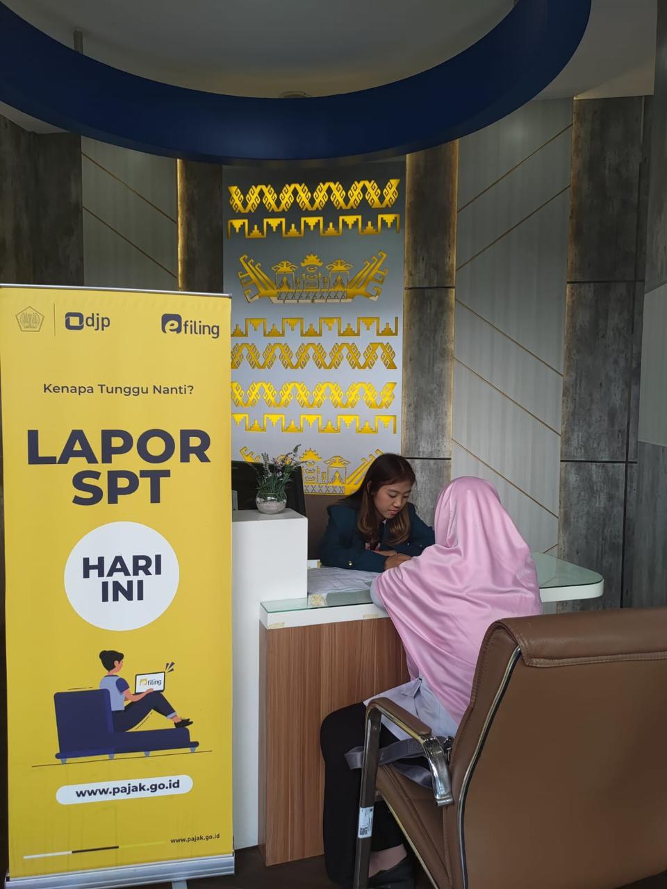 Menjelang puncak masa pelaporan Surat Pemberitahuan (SPT) Tahunan Pajak Penghasilan (PPh) Orang Pribadi yang akan jatuh pada akhir Maret 2024, relawan pajak membantu wajib pajak melaporkan SPT Tahunan di Kantor Pelayanan Pajak (KPP) Madya Bandar Lampung, Kota Bandar Lampung, Provinsi Lampung (Jumat, 8/3).