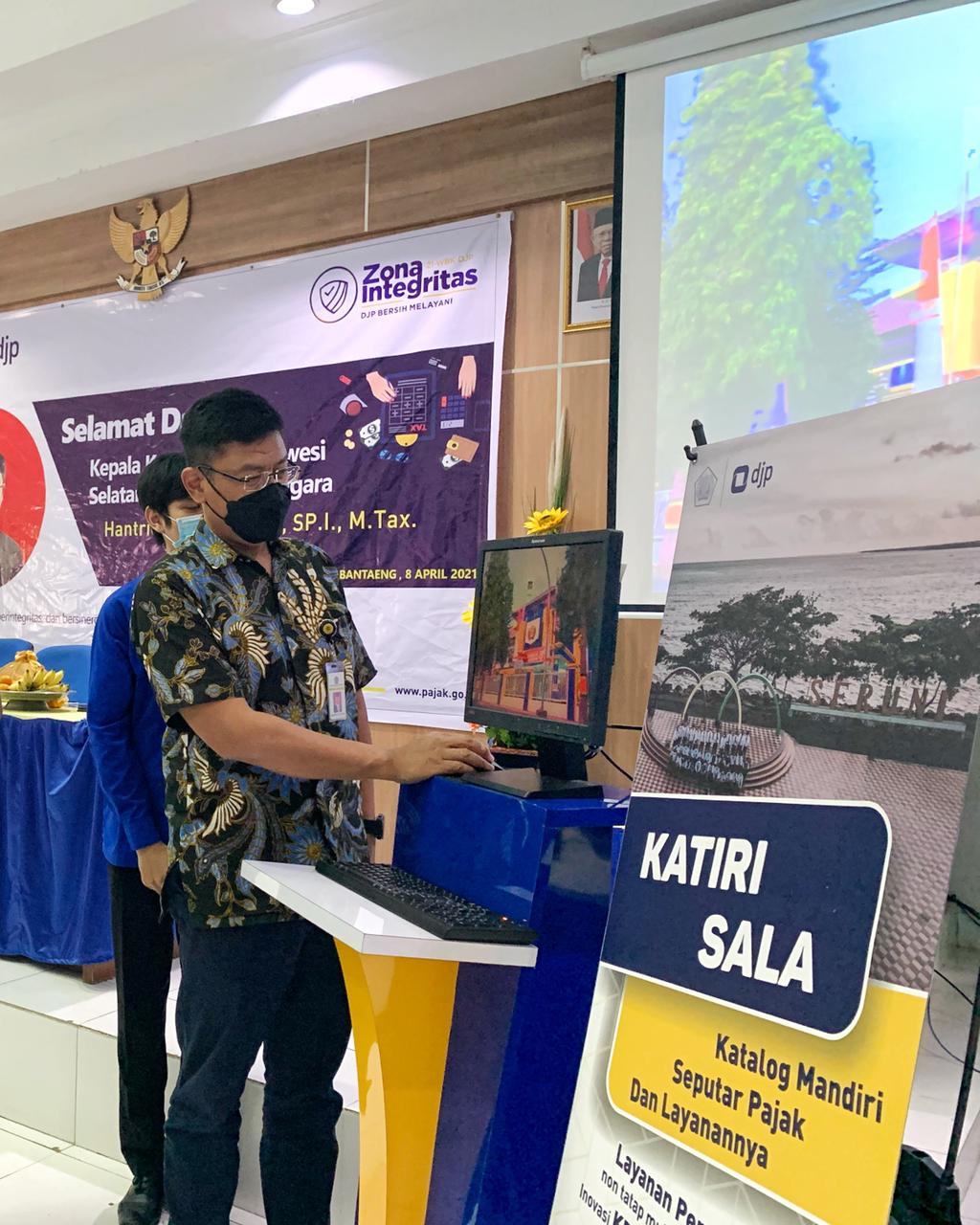 Kepala Kantor Wilayah (Kakanwil) DJP Sulawesi Selatan, Barat, dan Tenggara Hantriono Joko Susilo melakukan kunjungan kerja ke Kantor Pelayanan Pajak (KPP) Pratama Bantaeng dalam rangka peresmian aplikasi Katiri Sala oleh KPP Pratama Bantaeng (Kamis, 8/4).