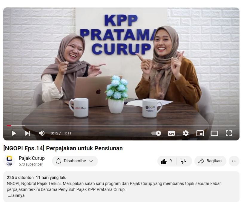 Kantor Pelayanan Pajak (KPP) Pratama Curup baru saja merilis siniar (podcast) episode terbaru yang mengangkat topik kewajiban perpajakan bagi pensiunan dan bertempat di ruang siniar KPP Pratama Curup, Jl S. Sukowati No. 39, Air Putih Lama, Curup, Kabupaten Rejang Lebong, Provinsi Bengkulu (Senin, 1/7).