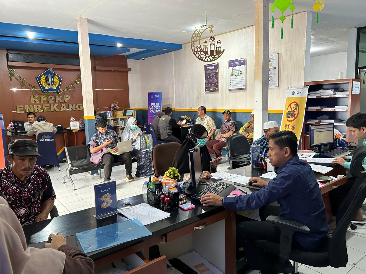 Kantor Pelayanan, Penyuluhan, dan Konsultasi Perpajakan (KP2KP) Enrekang menerima kedatangan rombongan pensiunan guru yang ingin mengajukan permohonan penetapan Wajib Pajak Non Efektif di Tempat Pelayanan Terpadu (TPT) KP2KP Enrekang (Selasa, 4/6).