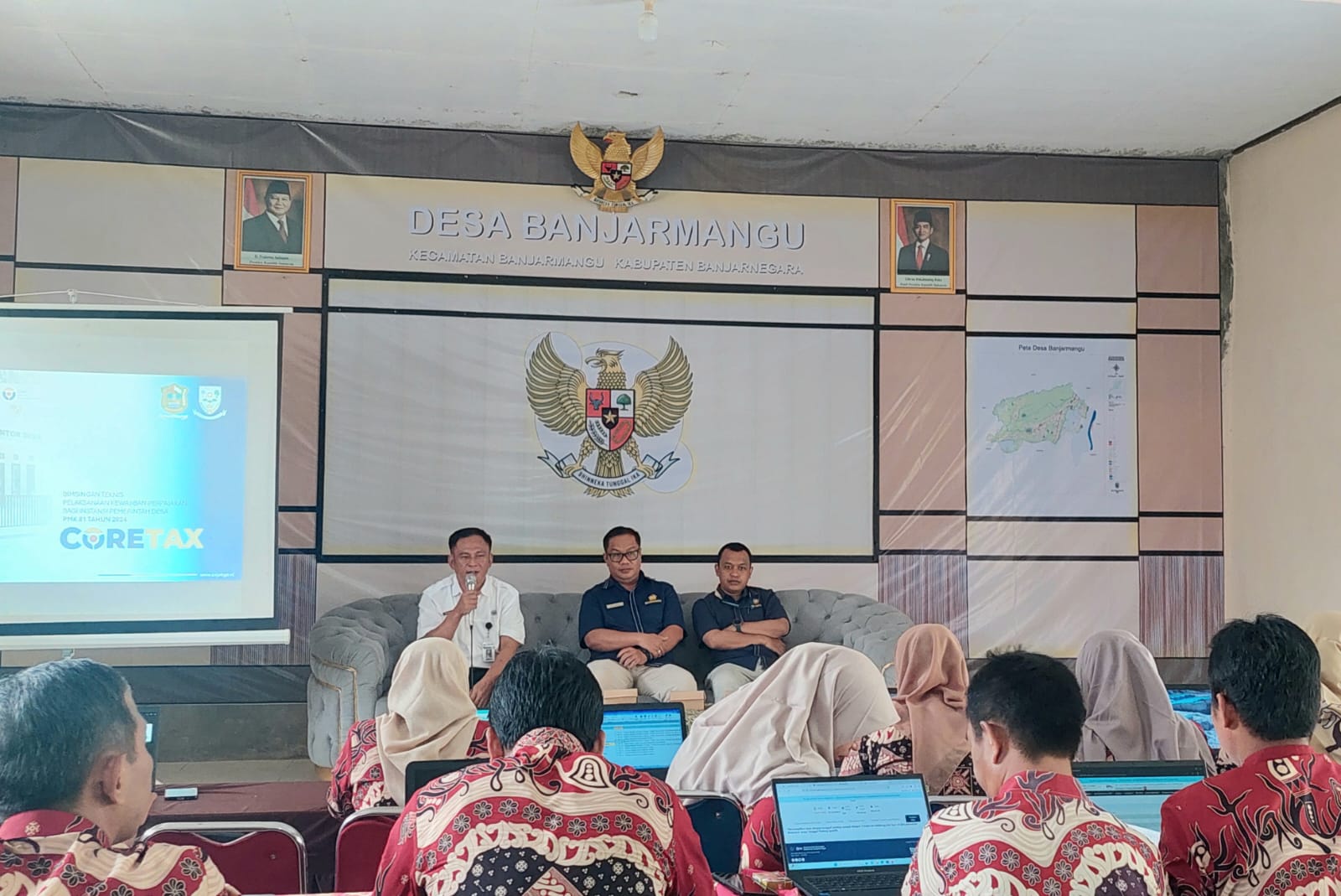 17 Bendahara Desa di wilayah Kecamatan Banjarmangu, Kabupaten Banjarnegara, menghadiri Bimbingan Teknis Kewajiban Perpajakan bagi Instansi Pemerintah Desa Melalui Coretax DJP (Kamis, 11/6). Kegiatan ini diselenggarakan di Aula Desa Banjarmangu dan merupakan bentuk kerja sama antara Kantor Pelayanan Pajak (KPP) Pratama Purbalingga dengan Pemerintah Daerah Kecamatan Banjarmangu.