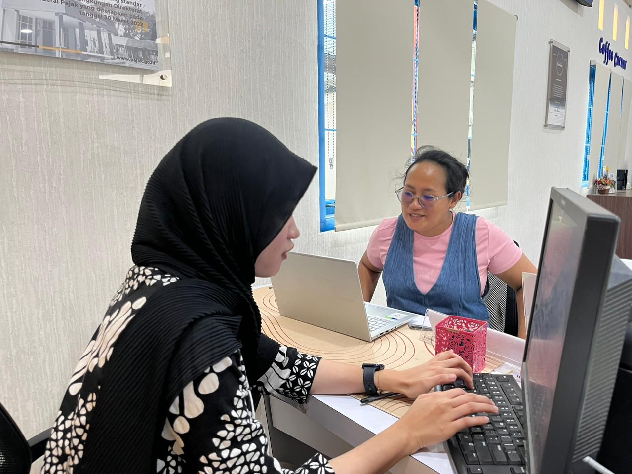 Seorang wajib pajak bernama Mirna menyambangi loket helpdesk Kantor Pelayanan Pajak (KPP) Pratama Poso di Morowali dalam rangka konsultasi tata cara pembuatan kode billing melalui DJP online (13/12). Kunjungan Ibu Mirna ini disambut baik oleh Pelaksana Seksi Pelayanan Nabella Putri Lestari.