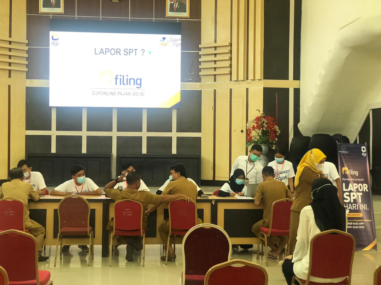 Tim Asistensi SPT KPP Pratama Gorontalo mendatangi Kantor Walikota Gorontalo (Senin, 1/3). Kedatangan tim yang terdiri dari Pegawai Kantor Pajak dan Relawan Pajak Universitas Negeri Gorontalo (UNG) bertujuan untuk membantu para pegawai di lingkungan Kantor Walikota Gorontalo untuk melaporkan SPT Tahunan 2020. Kegiatan ini diselenggarakan di Aula lt. 1 Kantor Walikota Gorontalo serta dengan tetap memperhatikan Protokol Kesehatan.
