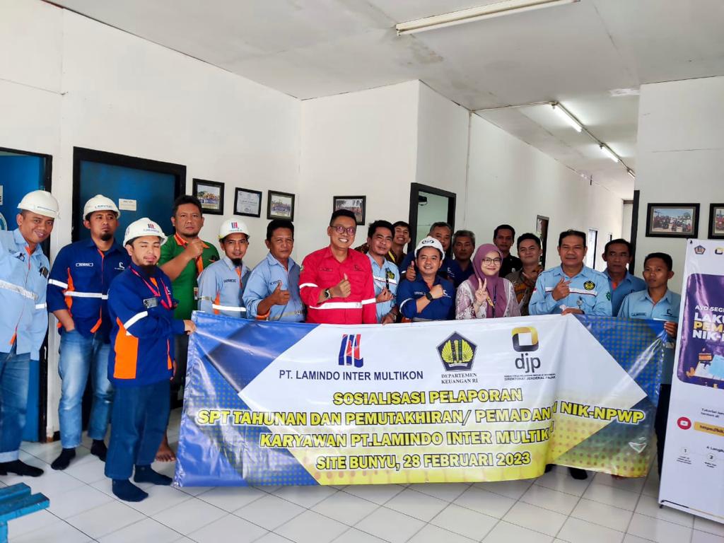 Tim Kantor Pelayanan Pajak (KPP) Pratama Tanjung Redeb yang terdiri dari Kepala Seksi Pengawasan VI Teti Haryani, Account Representative (AR) Seksi Pengawasan VI Johandhiyahya Beta Ardhi, dan pelaksana Seksi Pelayanan Chandra Putra Hasanuddin melakukan kunjungan ke perusahaan batu bara yang berlokasi di Jalan Dermaga, Bunyu Barat, Bunyu, Kabupaten Bulungan, Kalimantan Utara (Selasa, 28/).
