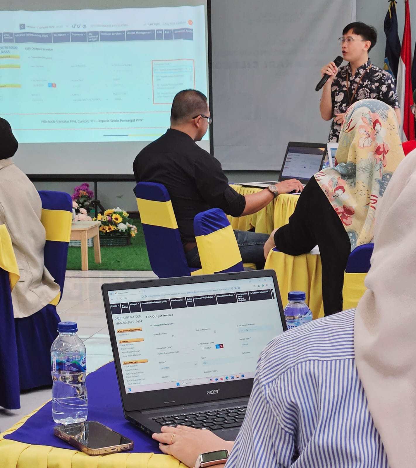 Peserta yang hadir sangat antusias selama edukasi berlangsung. Tim edukator selalu sigap untuk menjawab pertanyaan yang disampaikan oleh peserta. Selain tim edukator yang menyampaikan materi dan memandu simulasi, juga terdapat tim edukator yang mendampingi peserta dalam melakukan praktik. Tim edukator ini juga selalu sigap untuk membantu peserta dalam menghadapi kendala yang dialami saat penggunaan aplikasi Coretax.