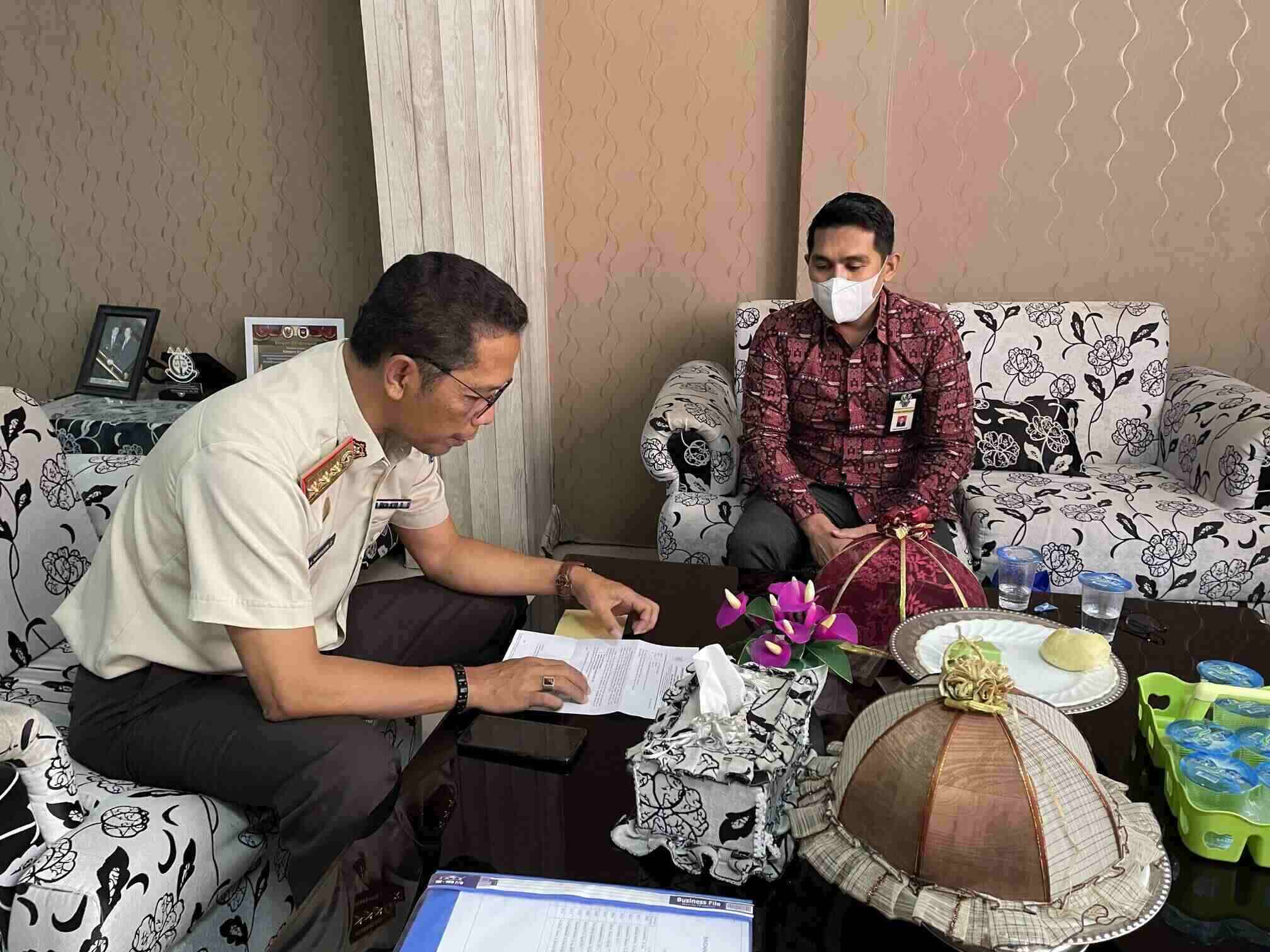 Kepala Kantor Pelayanan, Penyuluhan, dan Konsultasi Perpajakan (KP2KP) Bontosunggu melakukan kunjungan kerja terkait penyampaian Surat Permintaan Kembali Data Untuk Penyusunan DSPB ke Badan Pendapatan Daerah (Bapenda) Kabupaten Jeneponto (Selasa, 8/2).