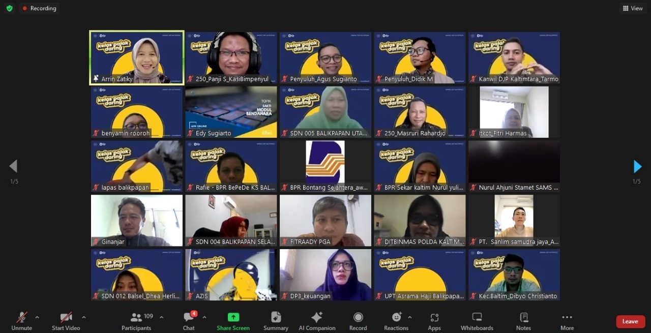 Kantor Wilayah Direktorat Jenderal Pajak (Kanwil DJP) Kalimantan Timur dan Utara menggelar kelas pajak dengan tema Tarif Efektif Rata-Rata (TER) Pajak Penghasilan (PPh) Pasal 21 Berdasarkan Peraturan Pemerintah Nomor 58 Tahun 2023 tentang Tarif Pemotongan dan Pengenaan Pajak Penghasilan Pasal 21 atas Penghasilan Sehubungan dengan Pekerjaan, Jasa, atau Kegiatan Wajib Pajak Orang Pribadi secara daring melalui Zoom Meeting di Kota Balikpapan (Jumat, 26/1).
