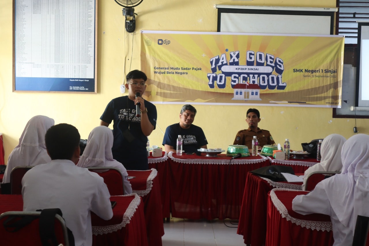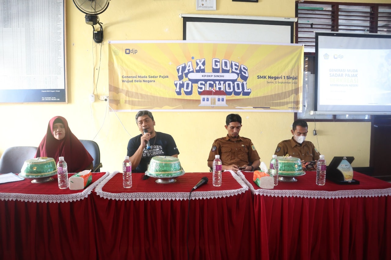 Kantor Pelayanan, Penyuluhan, dan Konsultasi Perpajakan (KP2KP) Sinjai melaksanakan kegiatan Tax Goes To School (TGTS) dalam rangka meningkatkan kesadaran generasi muda sejak dini. TGTS ini diselenggarakan di SMK Negeri 1 Sinjai Kab. Sinjai (Senin, 12/09)