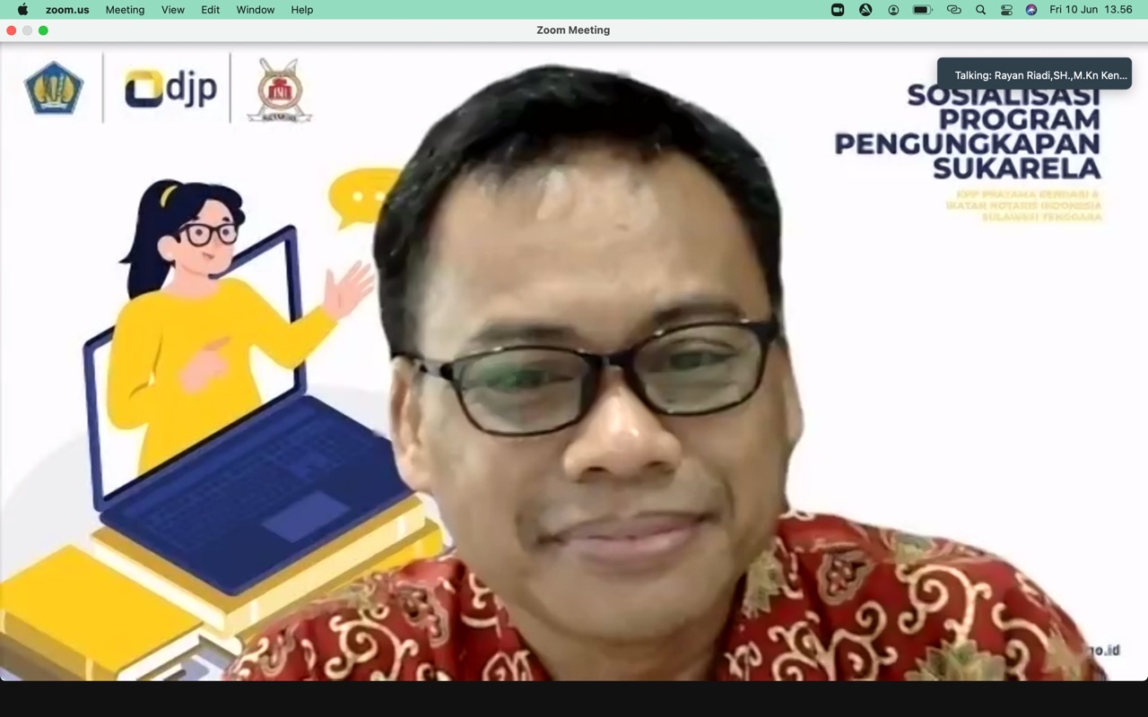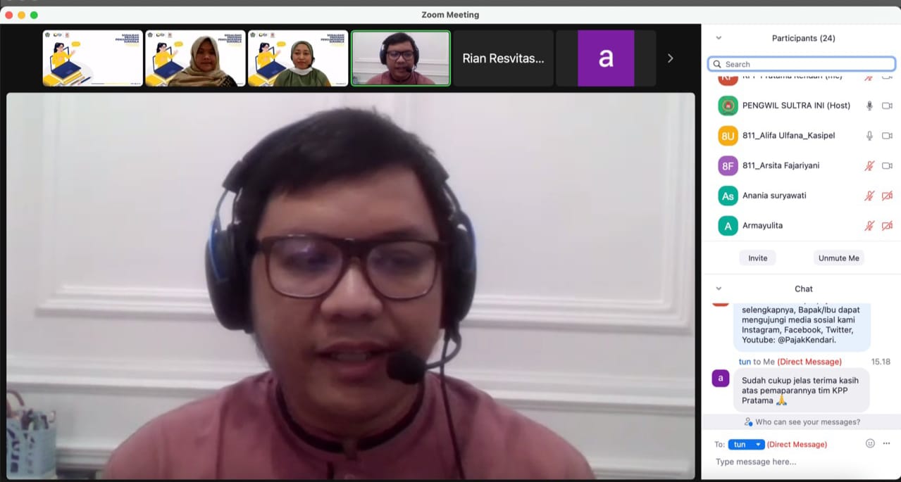 Kantor Pelayanan Pajak (KPP) Pratama Kendari mengedukasi wajib pajak dalam kelas pajak secara daring terkait Program Pengungkapan Sukarela (PPS) di Kendari, Sulawesi Tenggara (Jumat, 10/6). Kegiatan diikuti oleh notaris dan Pejabat Pembuat Akta Tanah (PPAT) di Kota Kendari dan sekitarnya.