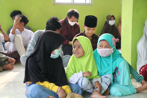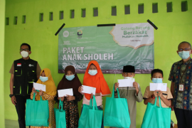 Setelah sambutan, acara dilanjutkan dengan penyerahan 30 “Paket Anak Sholeh” secara simbolis kepada beberapa santri serta foto bersama dengan tetap memerhatikan protokol kesehatan. Paket yang diberikan berupa perlengkapan ibadah dan baju dengan tujuan dapat memberikan kebahagiaan pada saat bulan Ramadan.