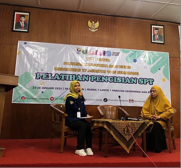 Kantor Pelayanan Pajak (KPP) Pratama Semarang Candisari melakukan pendampingan Pelatihan Pengisian Surat Pemberitahuan (SPT) selama dua hari di Tax Center Fakultas Ekonomika dan Bisnis (FEB) Universitas 17 Agustus 1945 (Untag) Semarang (Rabu, 25/1).