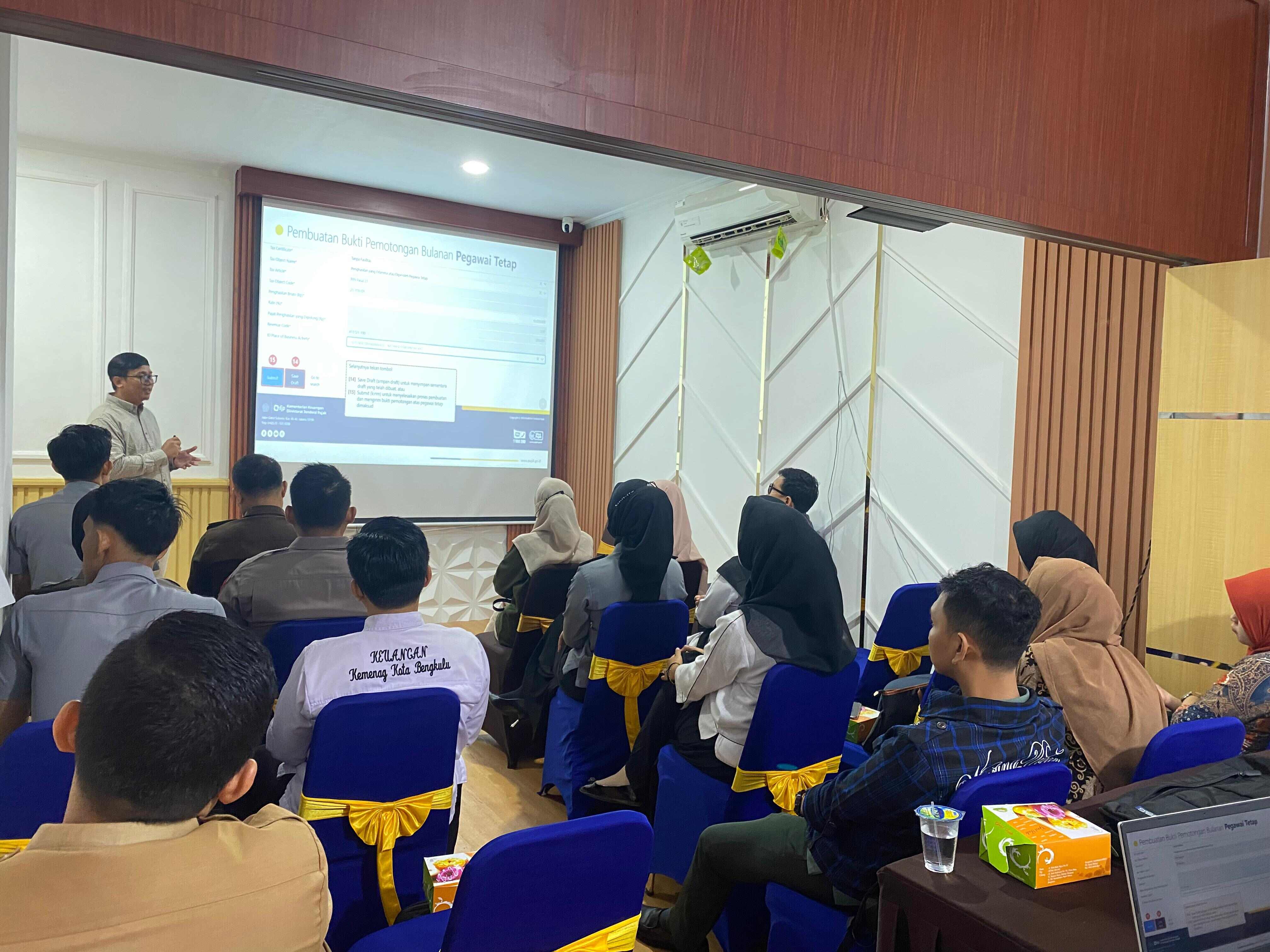 Kantor Pelayanan Pajak (KPP) Pratama Bengkulu Satu menyelenggarakan edukasi Coretax bagi wajib pajak dari berbagai instansi pemerintah (Selasa, 24/12). Kegiatan ini berlangsung di KPP Pratama Bengkulu Satu yang berlokasi di Kecamatan Ratu Samban, Kota Bengkulu, dengan menghadirkan Penyuluh Pajak Wasi Seto Wasisto sebagai pemateri utama.