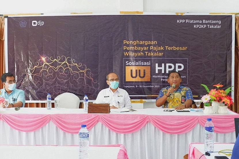 Kantor Pelayanan, Penyuluhan, dan Konsultasi Perpajakan (KP2KP) Takalar mengadakan acara Riung Pajak dan Sosialisasi Undang-Undang Nomor 7 Tahun 2021 tentang Harmonisasi Peraturan Perpajakan (UU HPP) (Kamis, 9/12). Acara yang melibatkan wajib pajak pelaku Usaha Mikro Kecil dan Menengah (UMKM) dan Instansi Pemerintah yang berada di wilayah kerja KP2KP Takalar ini dilaksanakan secara tatap muka di ruang aula Hotel Topejawa, Kabupaten Takalar.