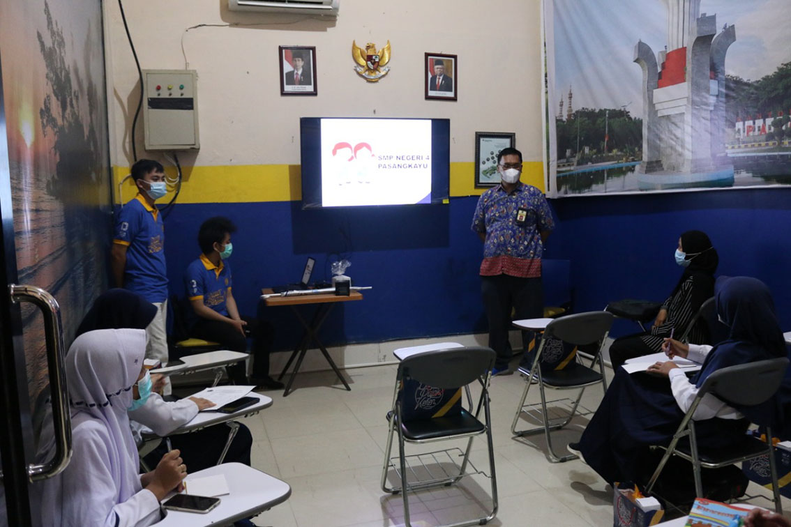 Dalam pelaksanaan edukasi perpajakan kali ini, pihak KP2KP Pasangkayu mengundang 10 siswa-siswi dari SMPN 4 Pasangkayu untuk hadir di lokasi kantor KP2KP Pasangkayu dengan memperhatikan protokol kesehatan secara ketat seperti menggunakan masker, cuci tangan dan cek suhu sebelum masuk serta jaga jarak.