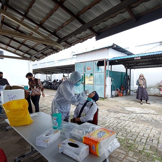 Kantor Pelayanan Pajak (KPP) Pratama Mempawah mengadakan swab test Polymerase Chain Reaction (PCR) bagi seluruh Pegawai Negeri Sipil (PNS) dan Pegawai Pemerintah Non Pegawai Negeri (PPNPN) di halaman belakang halaman kantor di Mempawah (Selasa,10/11).