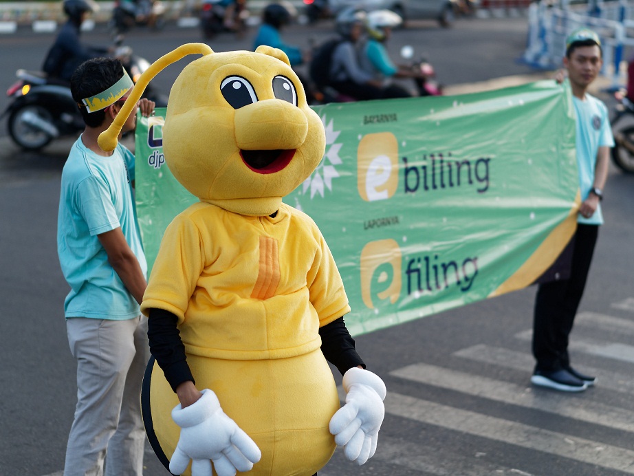 Spanduk bertuliskan Bayarnya via e-biling, Lapornya via e-Filing dibentangkan sebagai bentuk penyuluhan tidak langsung kepada masyarakat. Kegiatan yang juga diikuti Kepala Bidang Penyuluhan, Pelayanan, dan Humas Kanwil DJP Jateng I ini diakhiri pada pukul 17.00 WIB