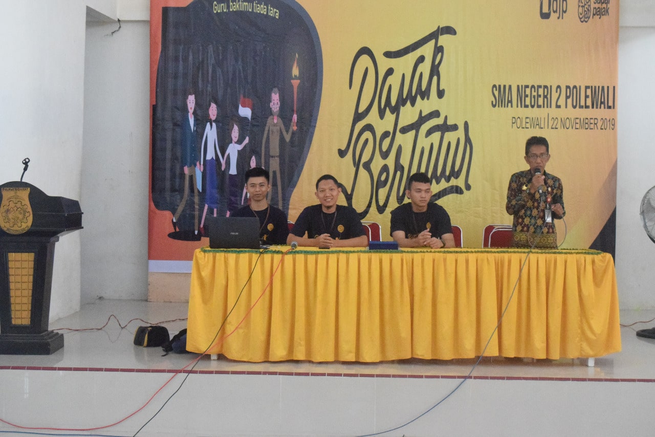 Kantor Pelayanan Penyuluhan dan Konsultasi Perpajakan (KP2KP) Polewali melangsungkan kegiatan edukasi perpajakan pada generasi muda melalui acara Pajak Bertutur yang diadakan di SMAN 2 Polewali (Jumat, 22/11). Pajak Bertutur merupakan program tahunan Direktorat Jenderal Pajak yang diadakan di berbagai jenjang pendidikan sepeti SD, SMP, SMA, hingga Perguruan Tinggi.