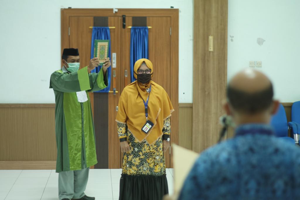Dengan disaksikan oleh 5 orang saksi yaitu Kepala Seksi Penagihan Andi Lukman Yunus, Kepala Seksi Pelayanan Sutrisno, Kepala Seksi Waskon IV Muhammad Basri, Kepala Subbagian Umum dan KI Tjandra Prihandono dan Rohaniawan Drs. Muslimin, pelantikan ditutup dengan pembacaan doa oleh Drs. Muslimin.