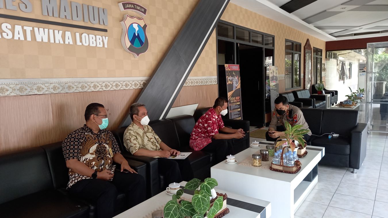 Kepala Kantor Pelayanan Pajak (KPP) Pratama Madiun Santoso Dwi Prasetyo melakukan kunjungan kerja ke Kepolisian Resor (Polres) Madiun. Prasetyo ditemui langsung oleh Kapolres Madiun AKBP Jury Leonard Siahaan di ruang Paramasatwika Lobby Kepolisian Resor Madiun (Jumat, 24/9).