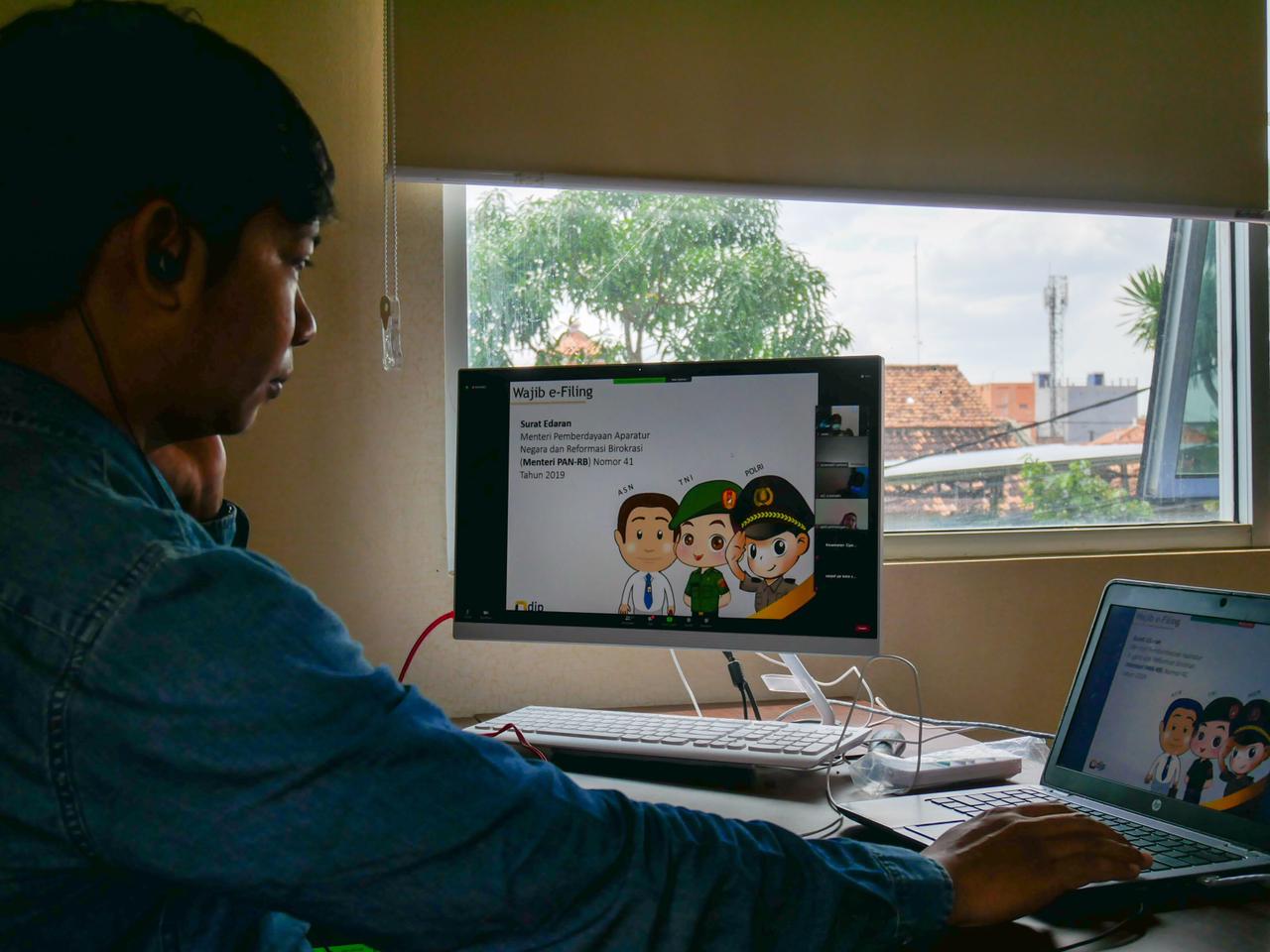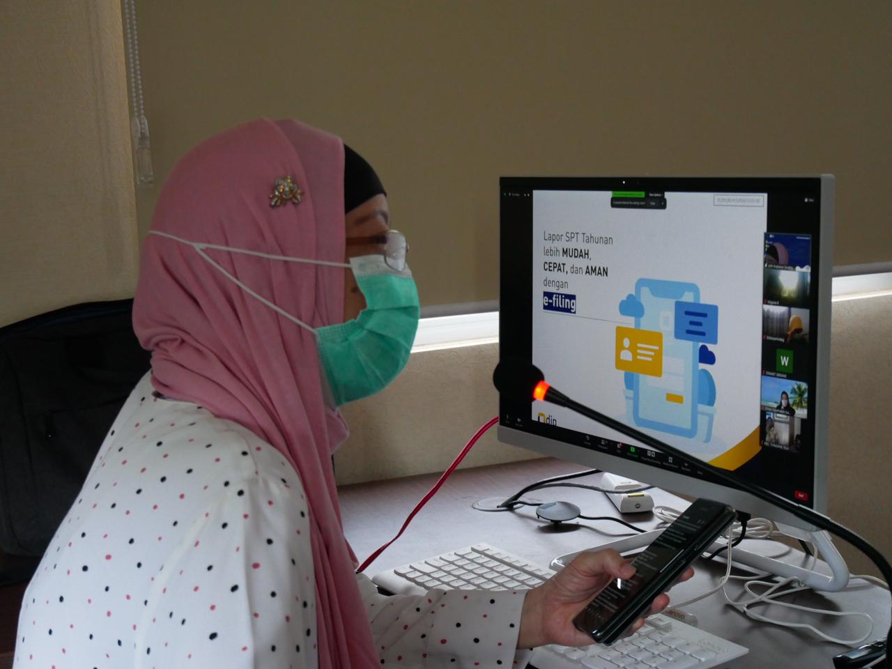 Para ASN satker Kota Serang dan satker Kabupaten Serang mengikuti kegiatan sosialisasi SPT Tahunan melalui e-Filing yang diselenggarakan oleh KPP Pratama Serang Barat melalui media Zoom Cloud Meeting di Banten (Kamis, 25/2).