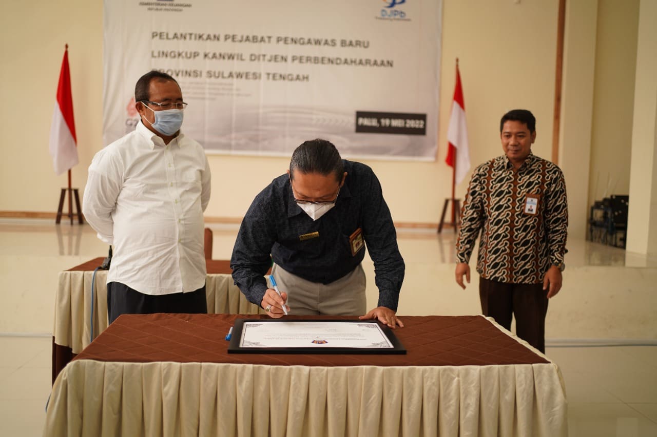 Kepala Kantor Pelayanan Pajak (KPP) Pratama Palu Bangun Nur Cahya Kurniawan menghadiri acara launching Aplikasi Layanan Bersama "Co Location Online", Layanan Konsultasi Pelaksanaan Anggaran, Barang Milik Negara (BMN), dan Lelang serta Perpajakan (Lalampa) di Ruang Aula Direktorat Jenderal Perbendaharaan (DJPb) Sulawesi Tengah (Sulteng) (Kamis, 19/5).