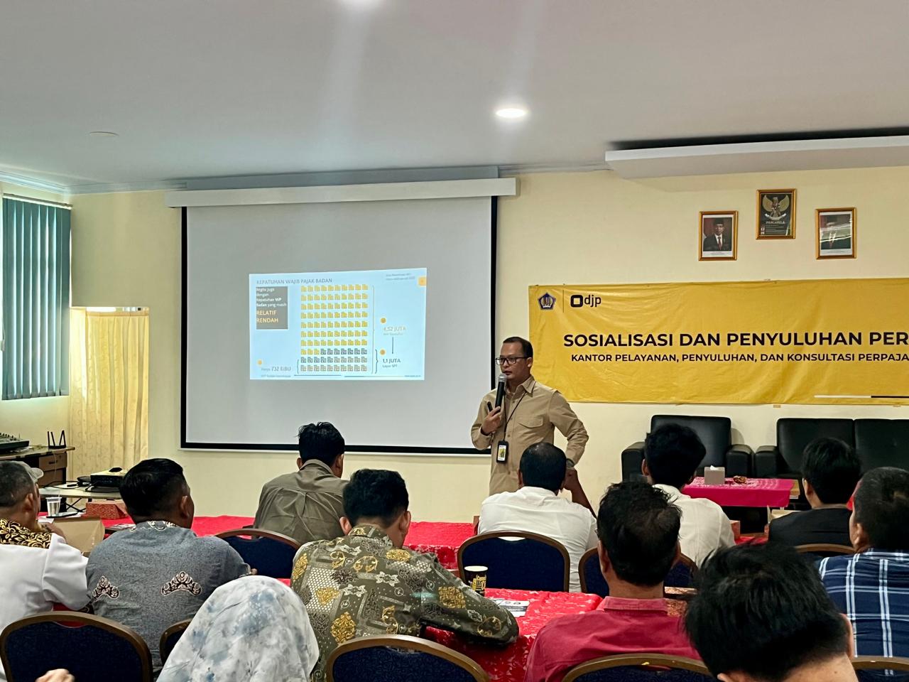 Kantor Pelayanan, Penyuluhan, dan Konsultasi Perpajakan (KP2KP) Kalianda berkolaborasi dengan Kantor Pelayanan Pajak (KPP) Pratama Natar mengadakan kegiatan Edukasi Perpajakan Wajib Pajak Badan Baru bertempat di Aula KP2KP Kalianda, Jalan Indra Bangsawan Nomor 42, Way Urang, Kalianda, Lampung Selatan, Lampung (Kamis, 26/9).