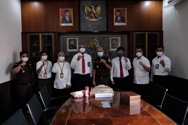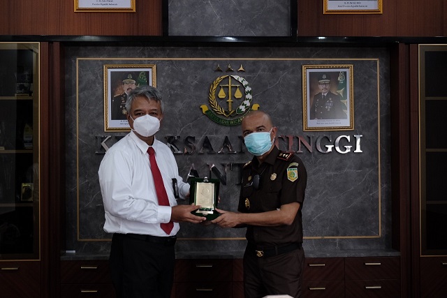 Kepala Kanwil DJP Banten Dionysius Lucas Hendrawan melakukan kunjungan kerja ke Kejaksaan Tinggi (Kejati) Banten dan berbincang dengan Kepala Kejati Banten yang baru Reda Mantovani di Ruang Kerja Kepala Kejati Banten, Kota Serang (Senin, 6/9).
