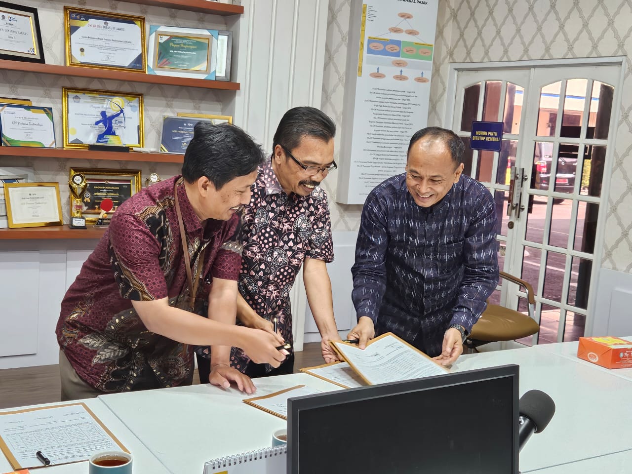Kantor Pelayanan Pajak (KPP) Pratama Tasikmalaya melakukan rekonsiliasi pembayaran pajak bersama Kantor Pelayanan Perbendaharaan Negara (KPPN) Tasikmalaya dan Kepala Badan Pengelola Keuangan dan Aset Daerah (BPKAD) Kota Tasikmalaya, di Ruang Rapat KPP Pratama Tasikmalaya, Jumat (23/8).