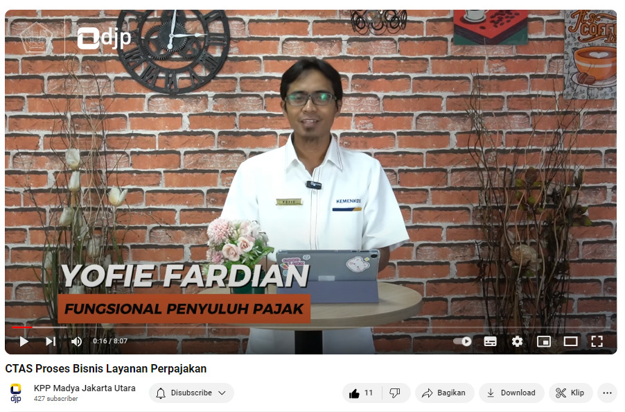 Kepala Kantor KPP Madya Jakarta Utara berharap tayangan ini memberi manfaat bagi wajib pajak dan CTAS dapat digunakan seoptimal mungkin sehingga kemudahan layanan perpajakan menjadi sebuah keniscayaan.